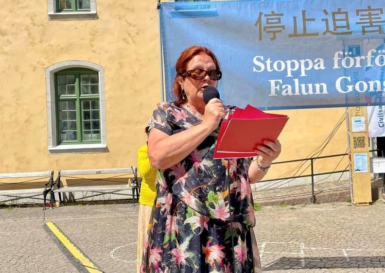 六月二十七日中午,瑞典国会议员洛塔·约翰松·福拿尔维(Lotta Johnsson Fornarve)亲临活动现场声援并发表演讲。在演讲中她提醒人们要多关注在中国的人权问题。她认为:“当今世界对中国发生的所有人权犯罪的发声远远不够。瑞典必须通过欧盟和联合国采取更有力的行动,向中国(中共)施压。”她呼吁中共必须无条件释放所有被关押的法轮功学员和其他良心犯。”