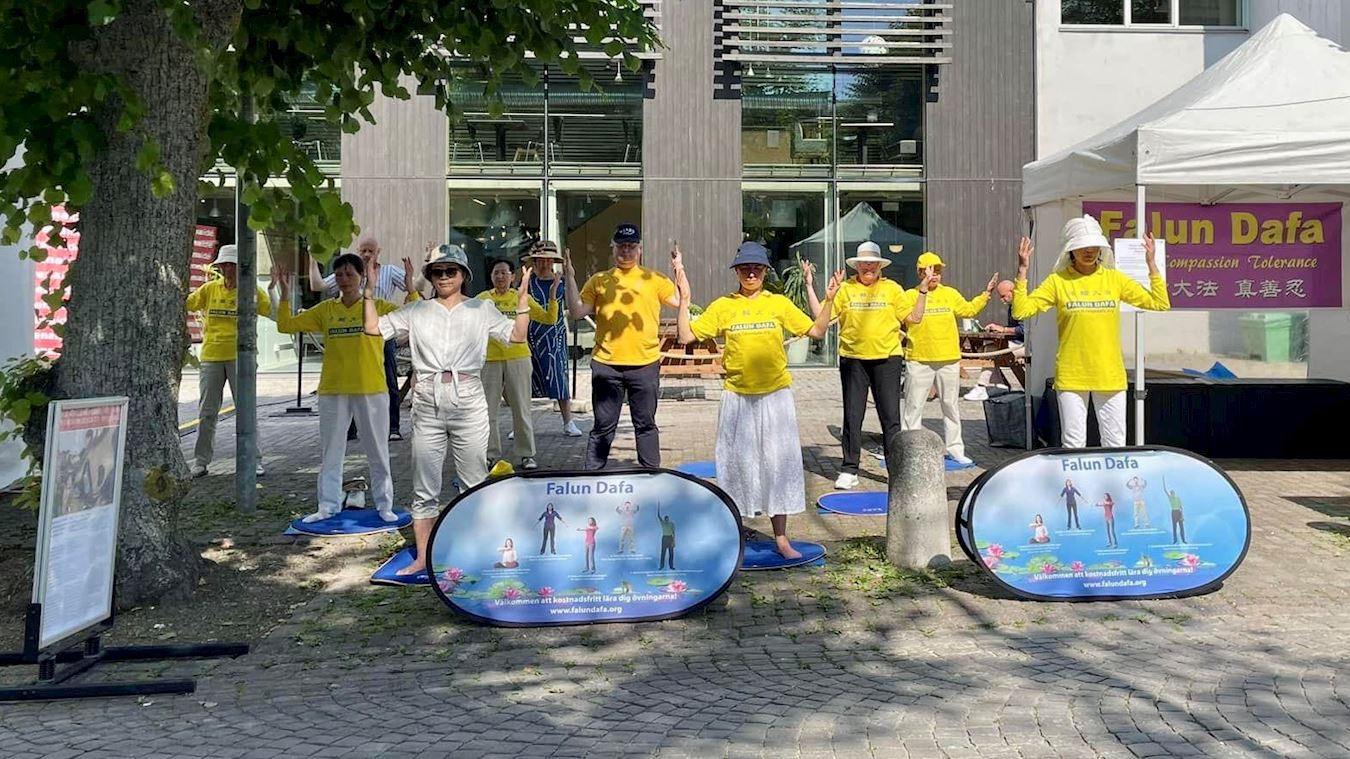 中心广场是举办各种活动的地方,每天有很多政要和各界人士经过此地,包括瑞典首相乌尔夫·克里斯特松(Ulf Kristersson)和他的团队。他们中很多人表示已了解了真相以及法轮功学员的诉求,并感谢学员在这里所做的一切。有的看到学员就主动打招呼,有的表示:“多年来忙于奔波,多次与你们相遇,从来没有深思过,今年好象开了窍,明白了你们做的事太重要了!非常感谢每年都能看到你们。”