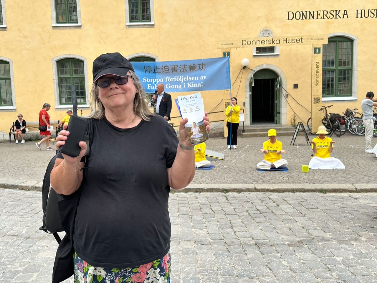 瑞典居民奥萨(Åsa)和她的儿子了解了真相后,表示赞同法轮功真善忍的理念,同时感谢法轮功学员让更多人了解了真相。她说:“这些事情(法轮功真相)太重要了,我们对此一点都不知道。瑞典的电视和报纸上也看不到这些报道,我回去后要给我认识的朋友打电话,敦促他们去报道。”