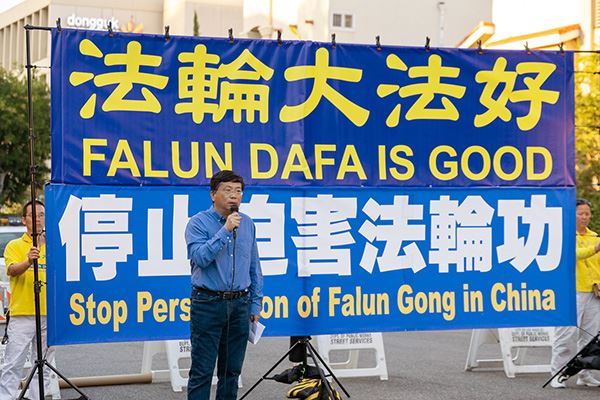 洛杉矶法轮大法学会负责人李有甫博士在发言时,提到了出逃的前沈阳陆军总院实习医生郑治。郑治去年面对镜头追述他被下令活摘一位二十岁年轻人的眼球和两个肾脏时,为之痛哭流涕。李有甫说:“这是撕心裂肺的一幕,是中共每天都在实施迫害的冰山一角。”