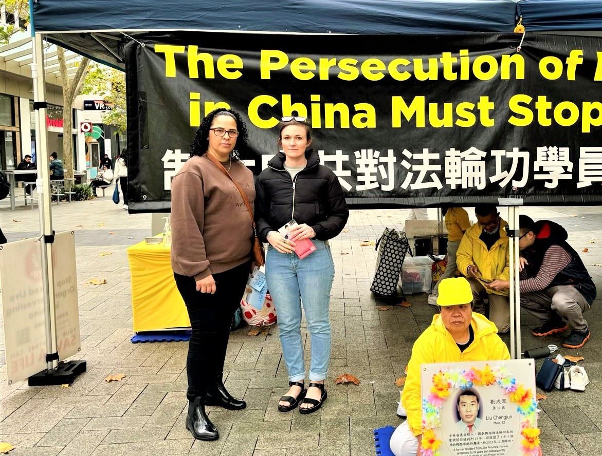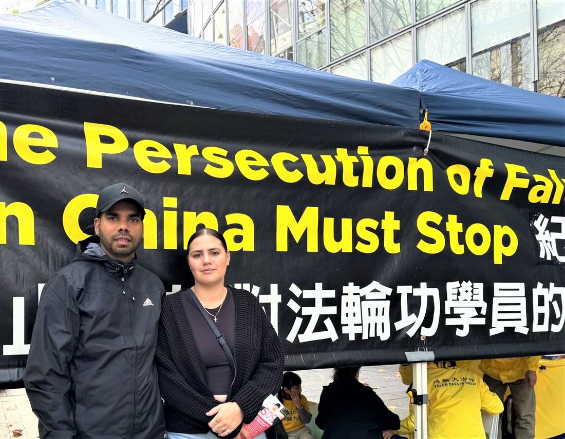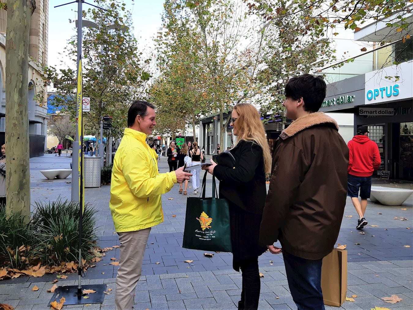 珀斯市民克里斯·安德森(Chris Anderson)和泰拉·惠特比(Tayla Whitby)表示,很喜欢法轮功学员的集会所散发出的活力,并对法轮功学员的反迫害表达了支持。安德森说:“这样平和自由的打坐,这种慈悲的能量氛围,这是正道,这绝对是一种很好的感觉,所以我们支持你们。”