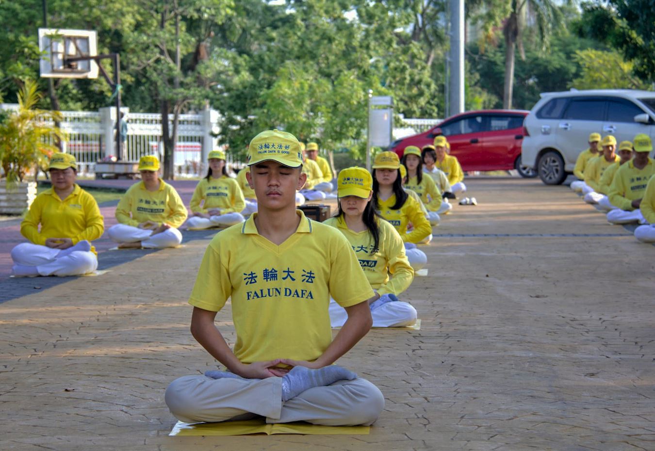 '图1~2:二零二四年七月二十日,印度尼西亚巴淡岛的法轮功学员集体炼功。'