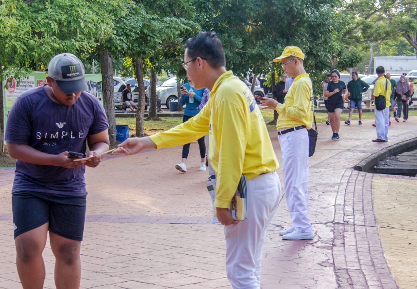'图3:一位路人接受法轮大法及其在中国遭受中共迫害的真相资料。'