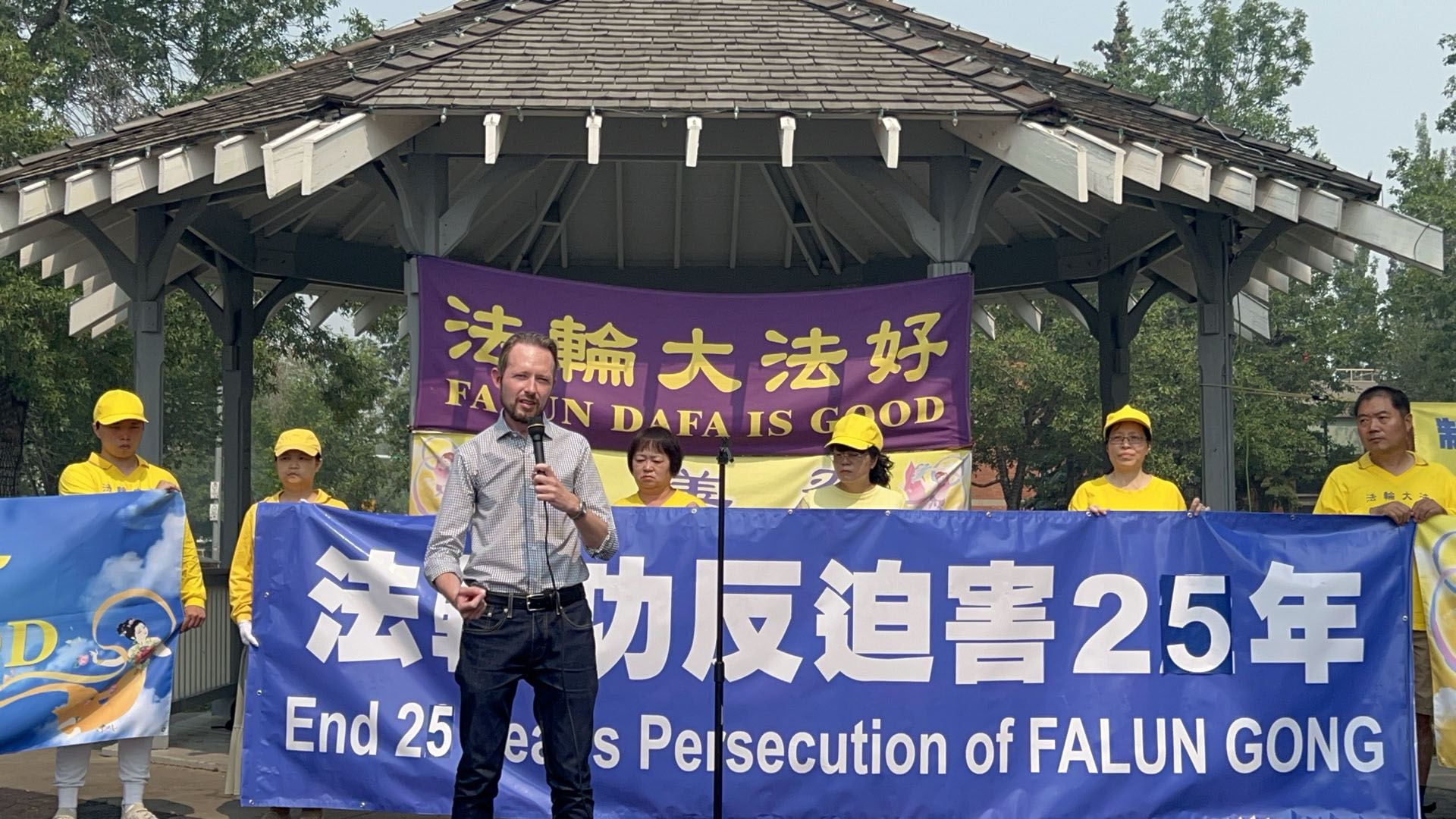 圣亚伯塔-埃德蒙顿选区国会议员麦克·库珀(Michael Cooper)代表保守党同僚,到场参加了集会并表达了对法轮功修炼者遭受中共迫害的同情。
