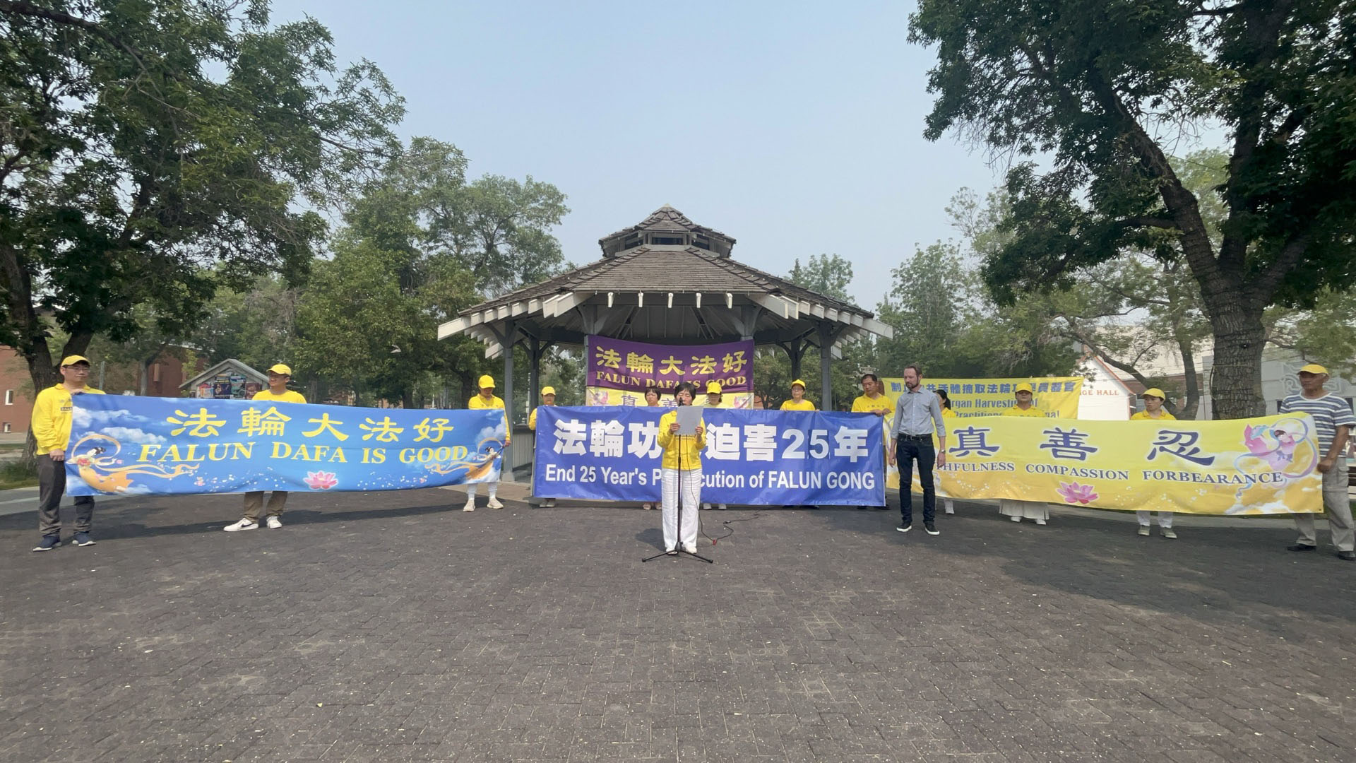 当天,集会在老斯特拉斯科纳农贸市场(Old Strathcona Farmers' Marketr)举行。埃德蒙顿法轮大法学会发言人介绍:二十五年前的七月二十日,中共对上亿法轮功修炼者开始了残酷迫害,“监禁、酷刑、谋杀、活摘器官等等,法律专家和人权倡导者谴责中共对法轮功学员犯下了反人类罪和种族灭绝罪。”