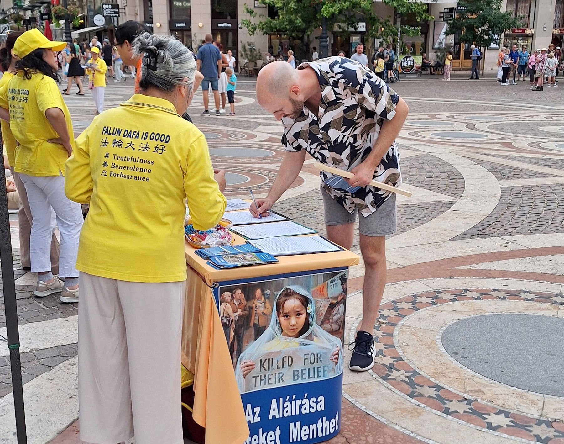 【明慧网二零二四年七月二十八日】二零二四年七月二十日,在法轮功和平反迫害二十五周年,匈牙利的部分法轮功学员聚集在布达佩斯举辧弘法,反迫害征签活动,向人们讲述中共在中国对法轮功长达二十五年的迫害。