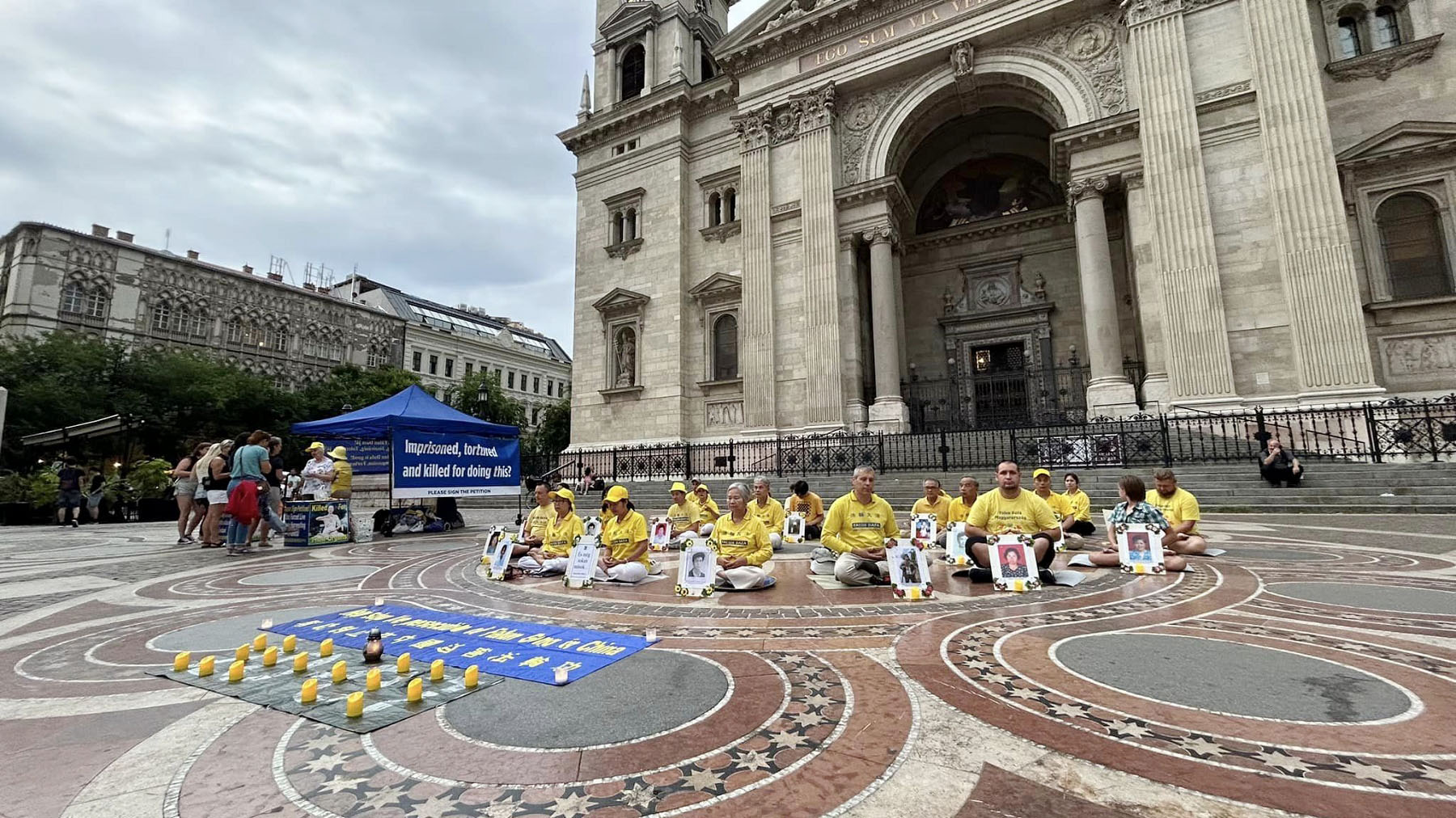 “这不是过去的历史,这正在发生!今天是中国对法轮功迫害二十五年的日子!在布达佩斯的圣斯蒂芬大教堂前,我们悼念逝去的同门同修。”