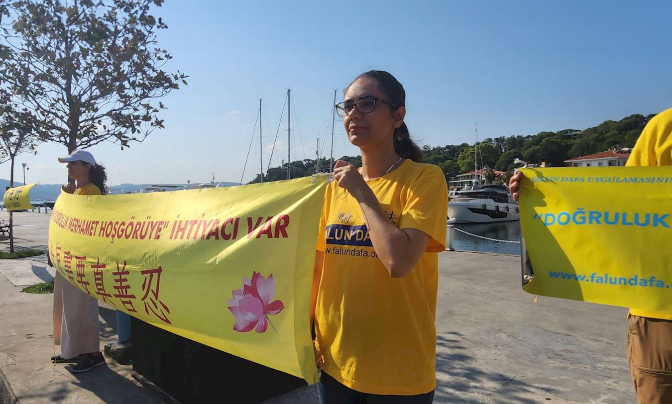 七月十九日,学员们在中共领事馆前举行和平集会,要求中共停止这场持续二十五年的迫害,当时是上班的早高峰,伊斯坦布尔人在开车经过时,纷纷鸣响车笛、鼓掌,并用土耳其人特有的方式对法轮功学员表示支持。