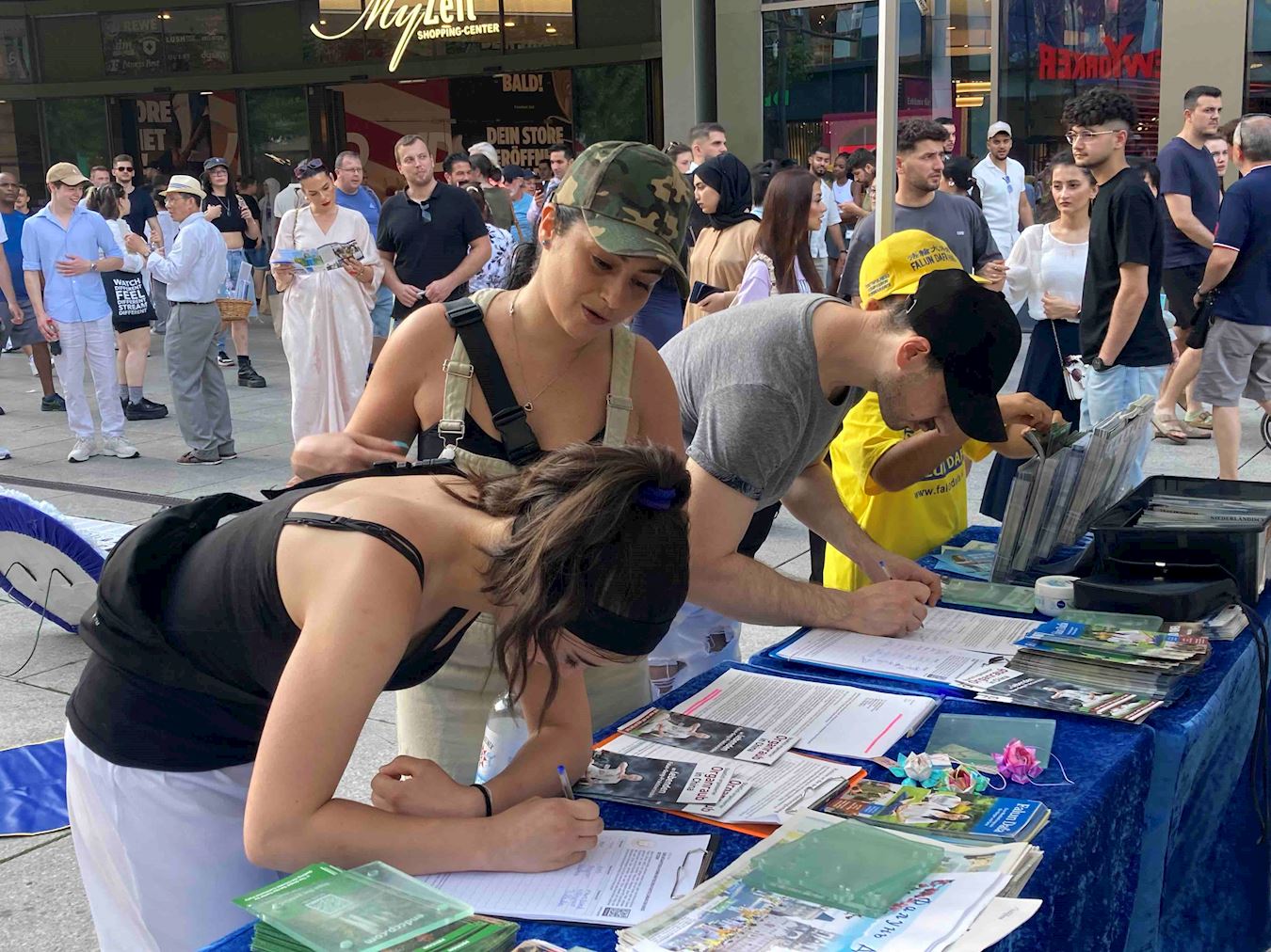 在二零二四年七月二十日,法兰克福附近和来自欧洲不同国家的法轮功学员在步行街上集会,揭露中共对法轮功长达二十五年的迫害。这场迫害给中国法轮功学员带来了无尽的苦难。从一九九九年起,世界各地的法轮功学员一直在以各种方式进行和平而坚决的抵抗。学员们的活动得到了越来越多的民众和政治家的认可和支持。