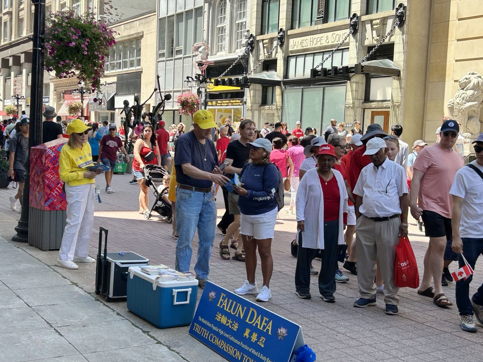 ![]() 图1~4:二零二四年七月一日,加拿大迎来一百五十七周年国庆日,部分法轮功学员在渥太华市中心繁华街道斯巴克街(Spark Street)向市民及游客演示功法,弘法、讲真相活动。 |