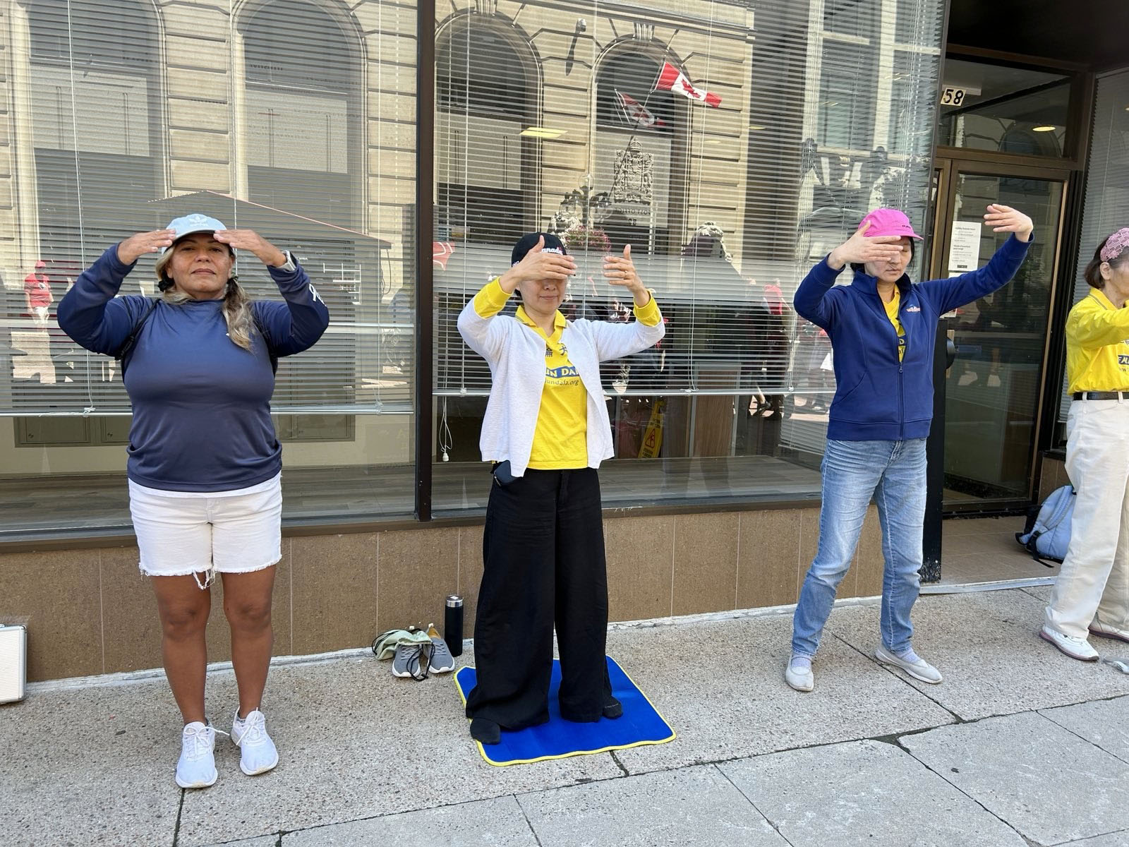 吕先生说,他已经在另一个加拿大城市做了“三退”,即声明退出了中共的党、团、队组织。这次看到渥太华有法轮功学员炼功,就想来学炼。