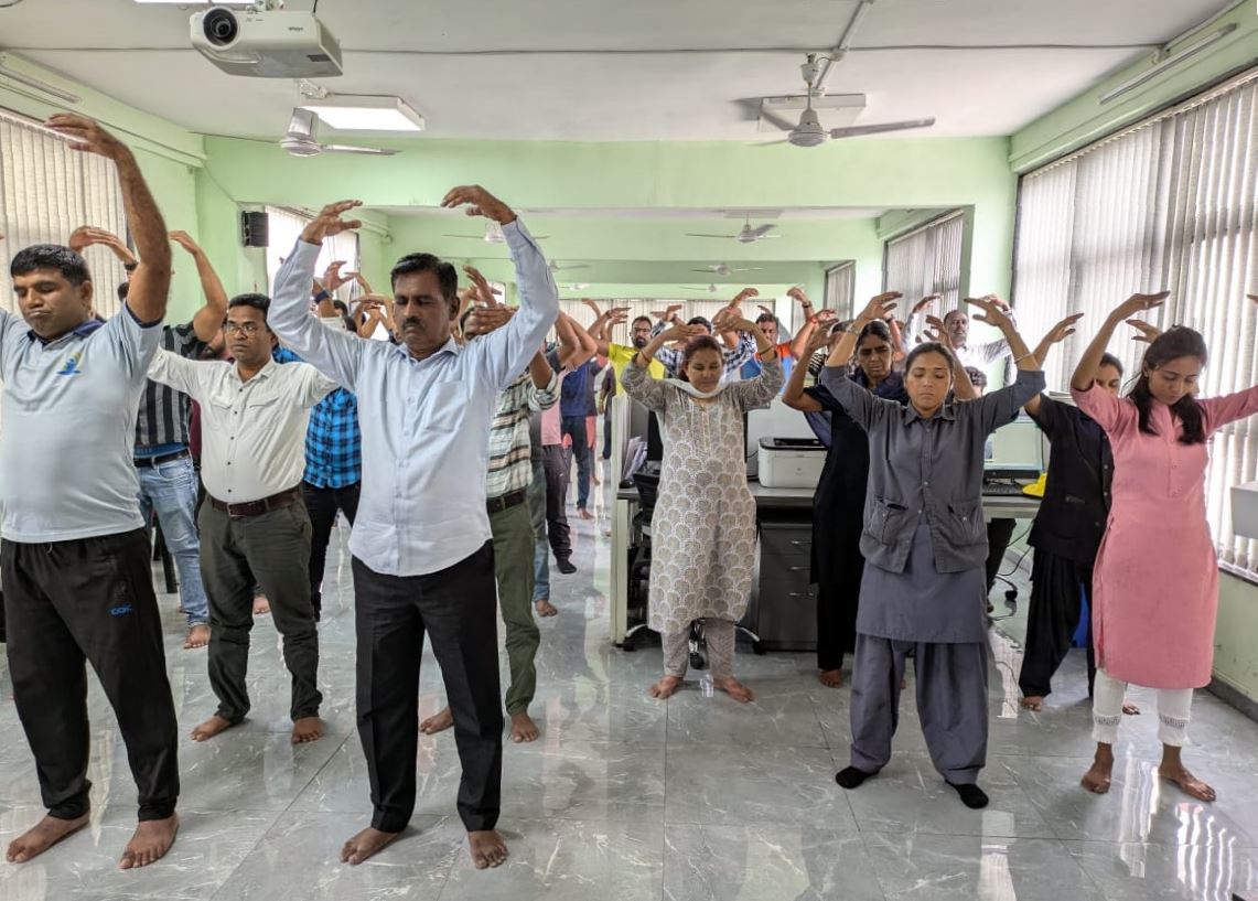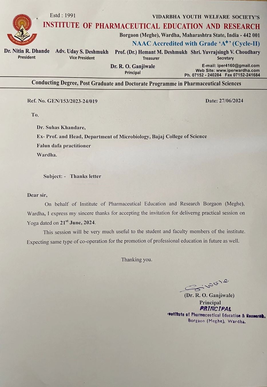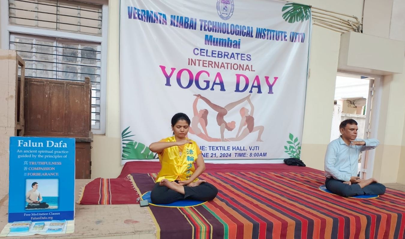 六月二十一日,法轮功学员受邀来到孟买著名学府——维尔玛塔·吉贾拜理工学院 (VJTI),教那里的教职员工学炼法轮功,校长萨钦·科雷(Sachin Kore)博士、生产工程系主任D.N.劳特(D. N. Raut)博士及三十多名员工参加。