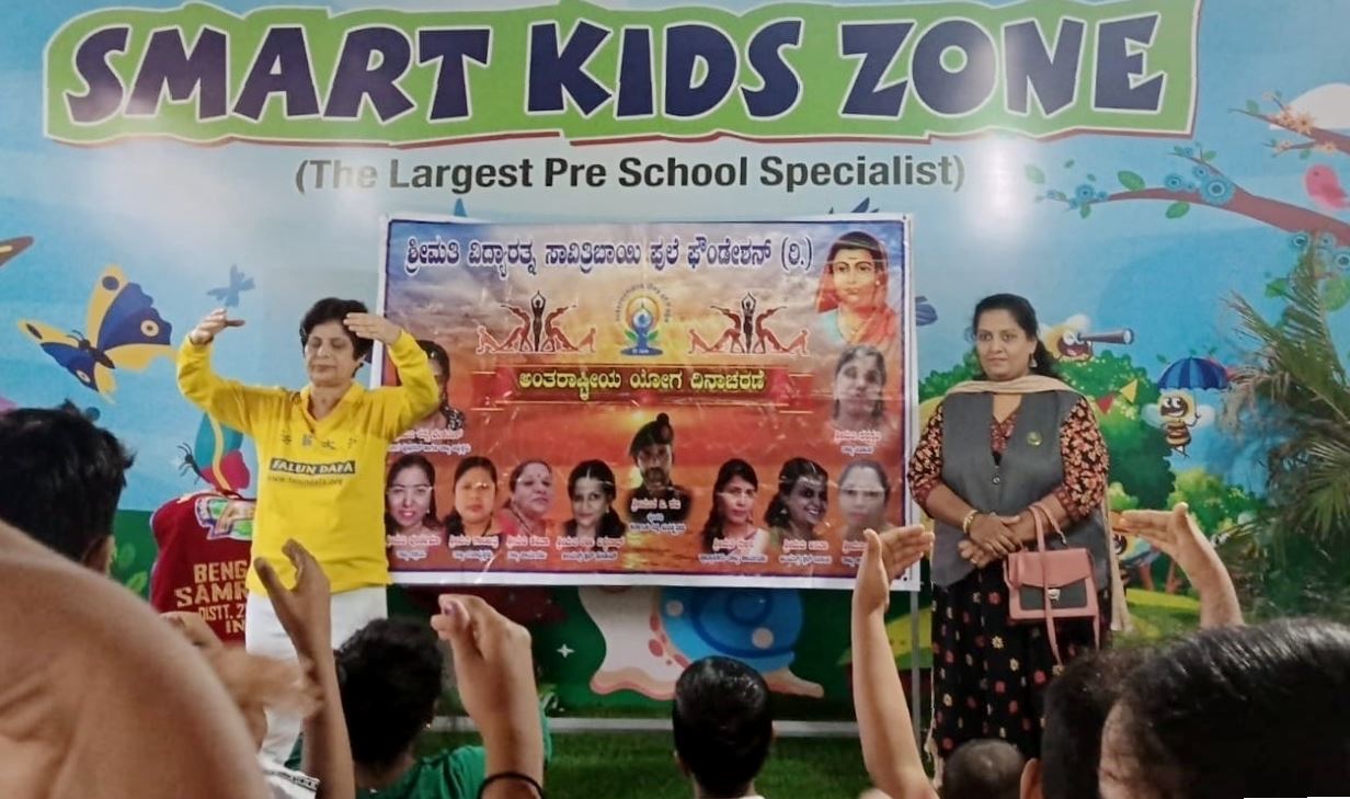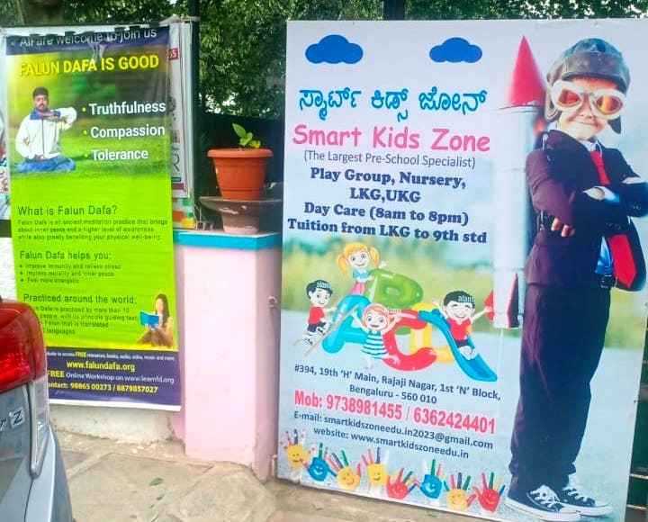 六月二十一日,法轮功学员在班加罗尔的聪明儿童(Smart Kids Zone)幼儿园举办介绍会,吸引了约二十位小朋友以及他们的家长、瑜伽教练和老师参加。