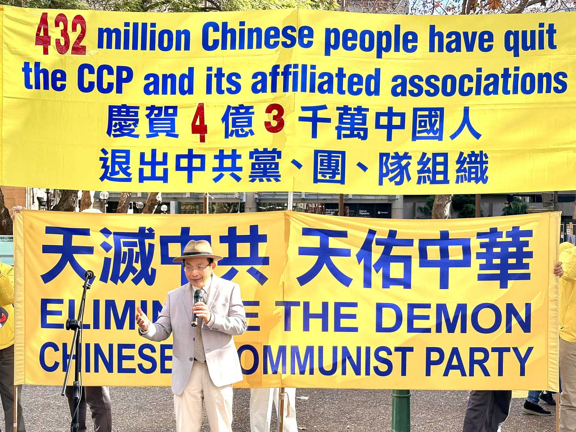 全球退党服务中心悉尼分部代表李元华表示,“中共对法轮功的迫害是当今中国最大的人权灾难。中共在迫害人民中引来天怒人怨,恶报连连。其政权如今是四面楚歌、风雨飘摇,就算一点风吹草动也令其感到末日来临,如惊弓之鸟,它在迫害中自己打倒自己。”