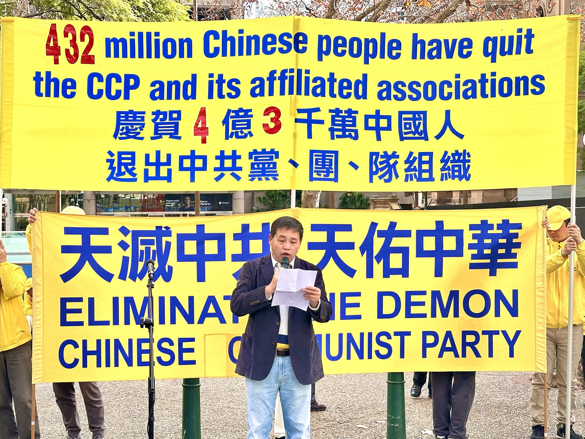“几周前中国总理李强的来访让我们清楚地看到了这一点。澳洲的媒体和政客们也开始意识到,澳洲也是中共的受害者。我们需要挺身而出,明确我们的立场和价值观,并维护这些价值观。”