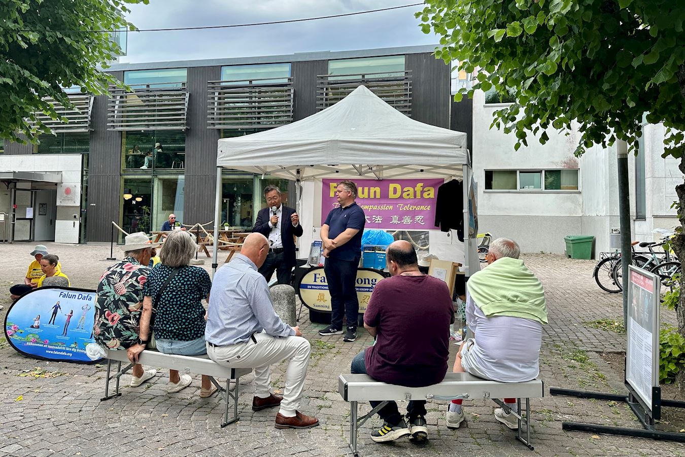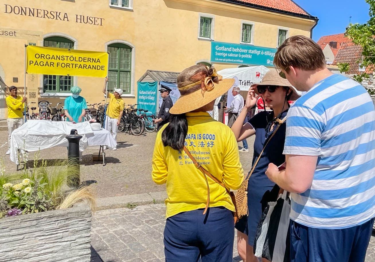 论坛周是瑞典一个大型传统的官民互动活动,也是法轮功学员向瑞典各党派、各界精英及民众传递大法美好和真相的好机会。学员们不仅在维斯比中心广场(Donners Plats)举办各种讲真相活动,并在有关中共问题的研讨会上介绍法轮功、揭露中共迫害,还来到各党派的展位前与瑞典多位国会议员互动,面对面讲述法轮功真相。