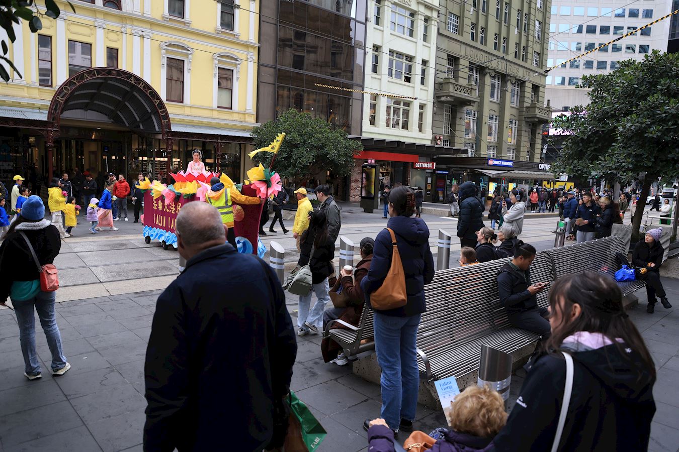 七月二十日,墨尔本市中心商业街举行的游行和集会都吸引了大量市民和游客观看,很多人接过法轮功真相传单了解详情。