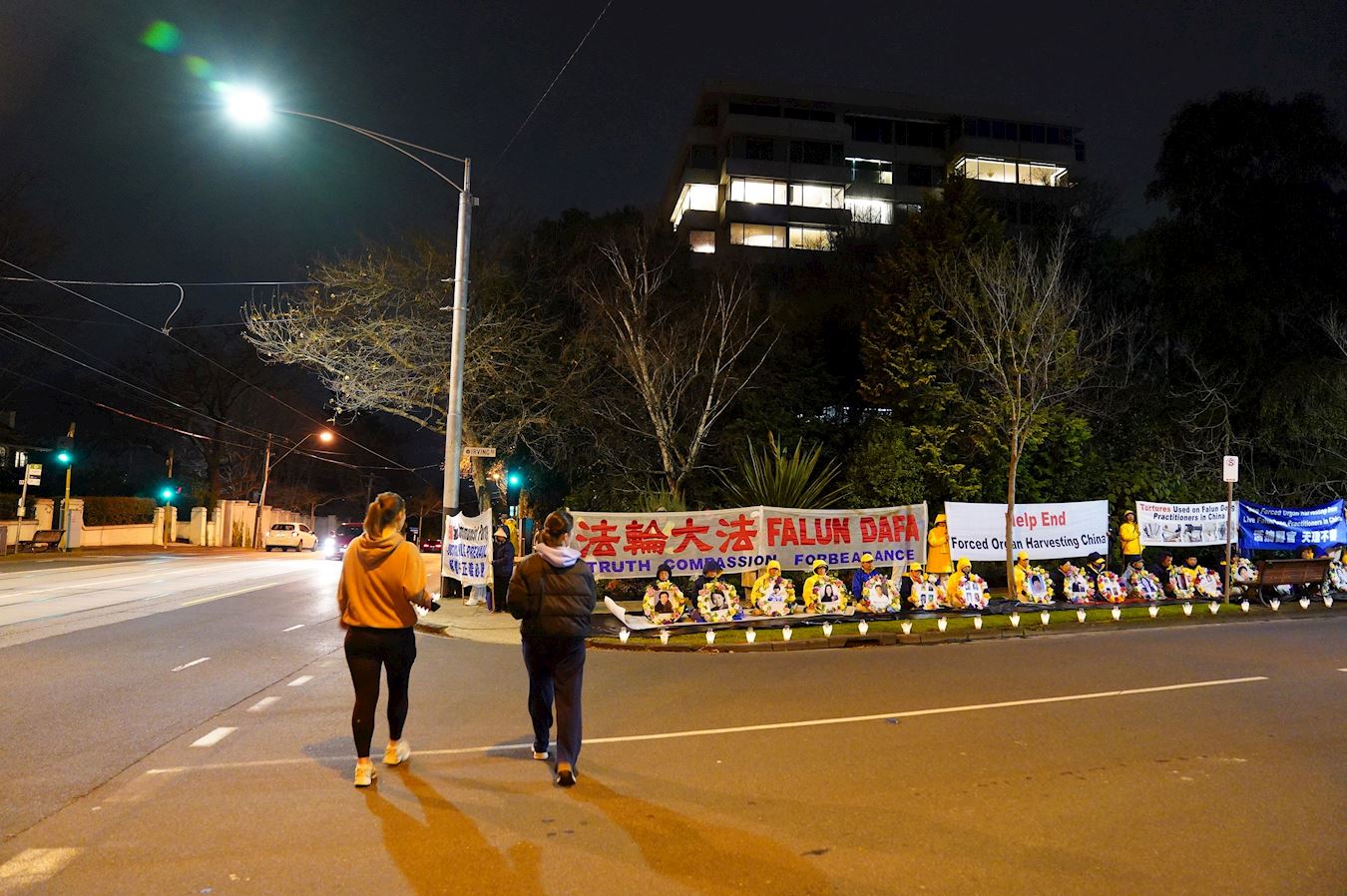 ![]() 图10~13:七月二十一日晚,墨尔本法轮功学员在中领馆旁的街道,举行了烛光夜悼,悼念二十五年来被中共迫害致死的法轮功学员,要求中共停止迫害,呼吁澳洲各界共同制止中共的反人类罪行。 |