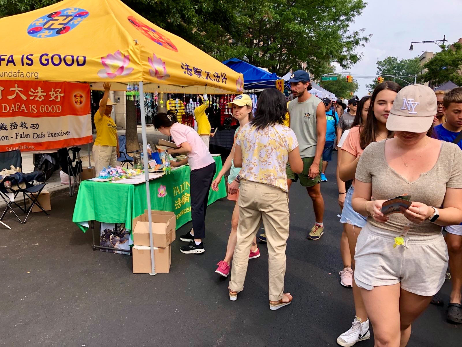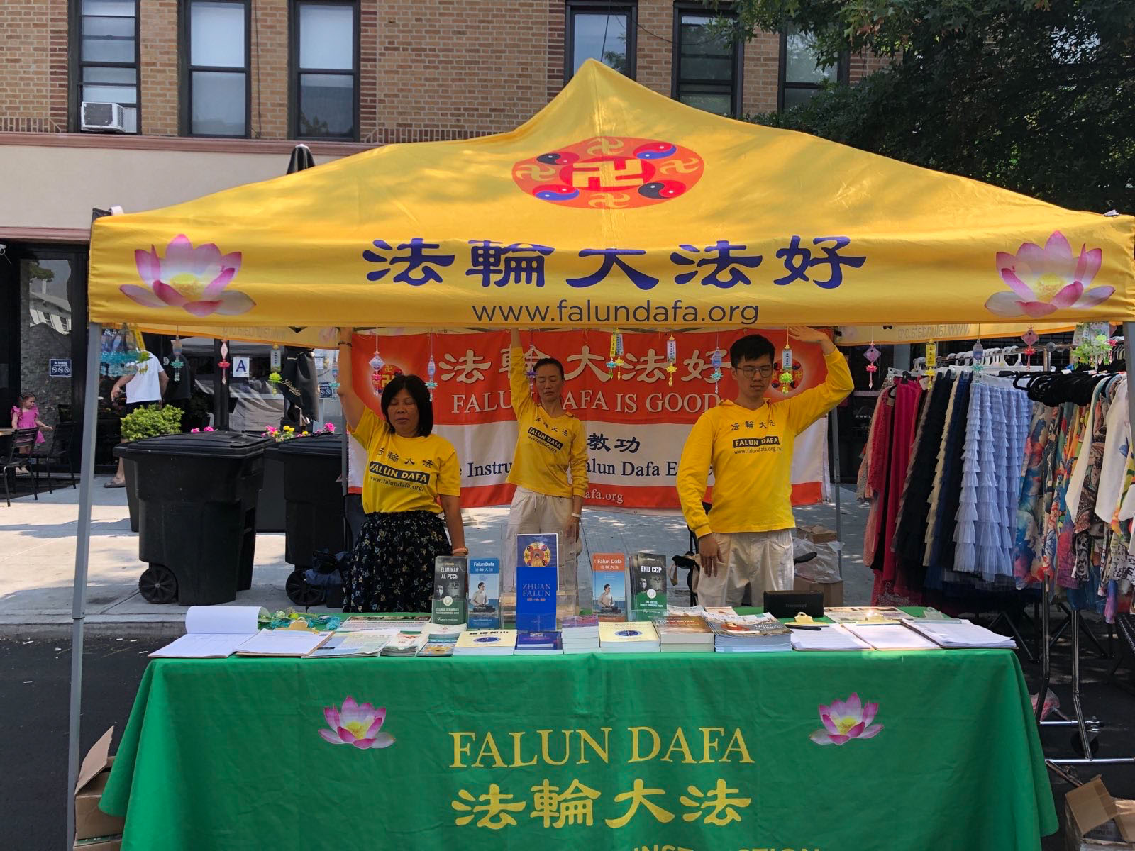 学员们表示:“这样的街市洪法活动能够大面积向人们介绍法轮功,并能跟民众有较多的问答和互动,让更多人记住法轮大法好,真、善、忍好。”学员表示:“虽然天气炎热,我们很珍惜有这个机会设立展位,传播法轮大法的美好!”
