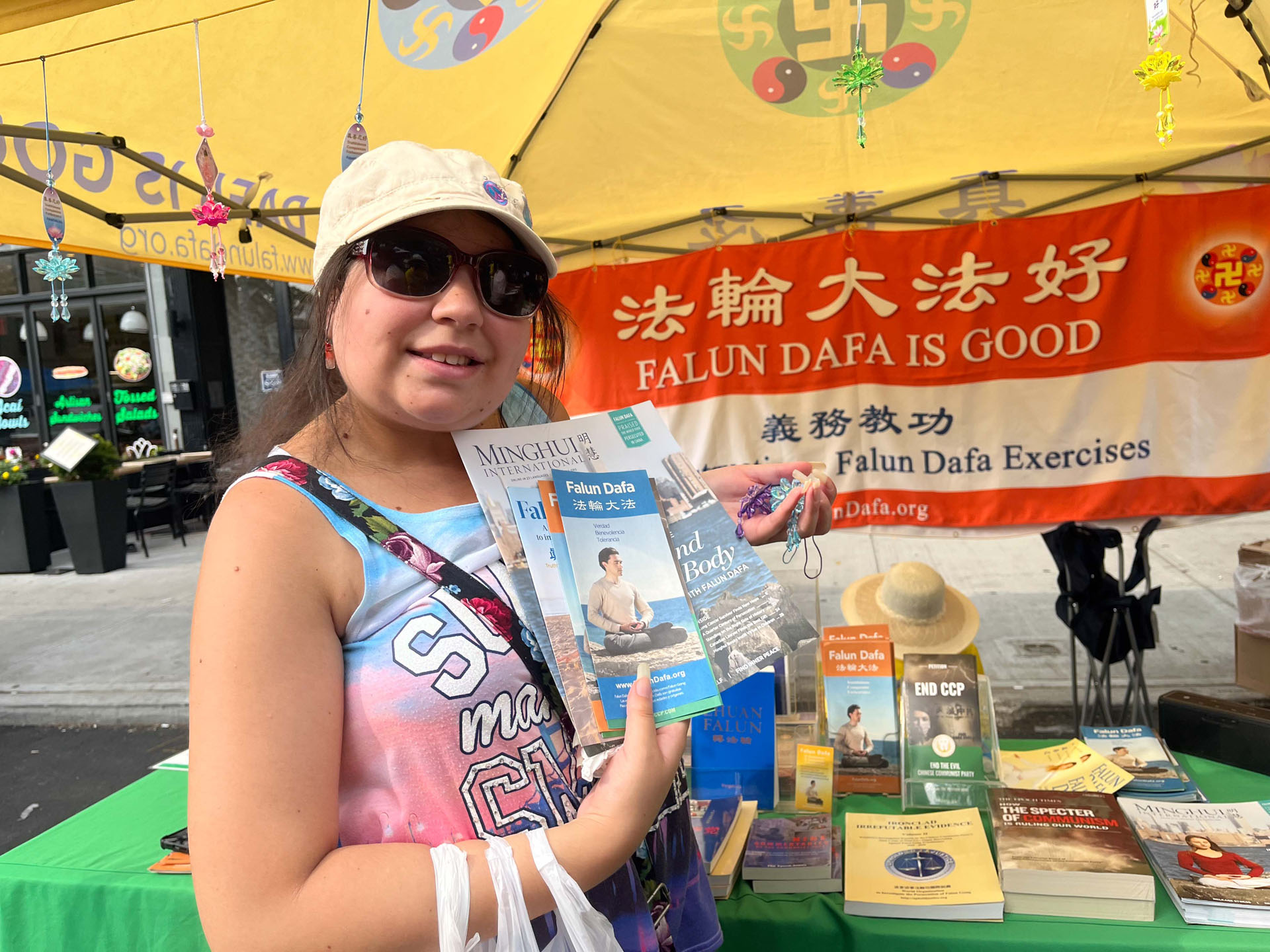 另一位游客克里斯蒂娜‧卡西(Christina Cathy)听闻了真相,收到了传单和精美的小莲花,在支持众院通过的《法轮功保护法案》上签名。