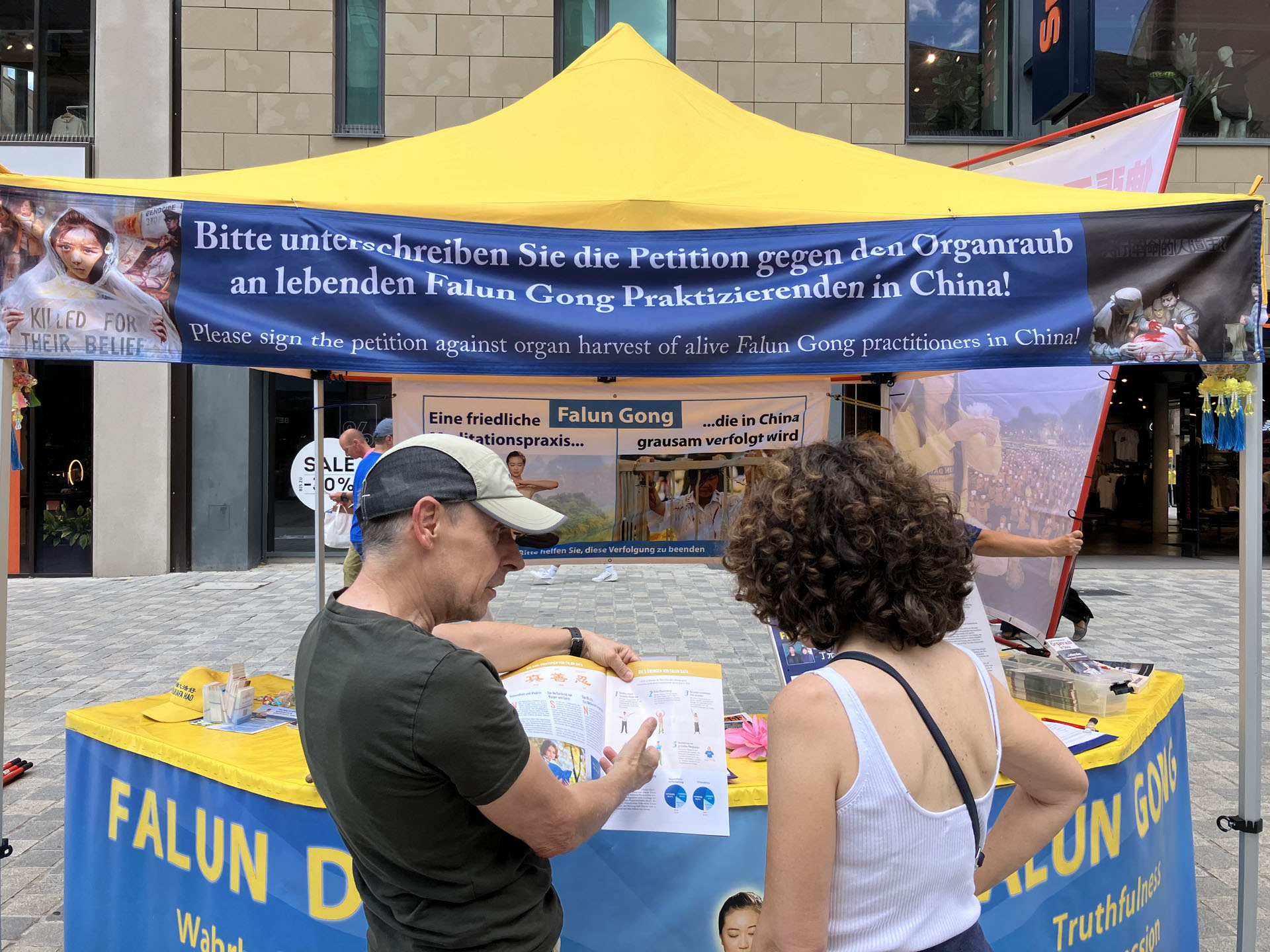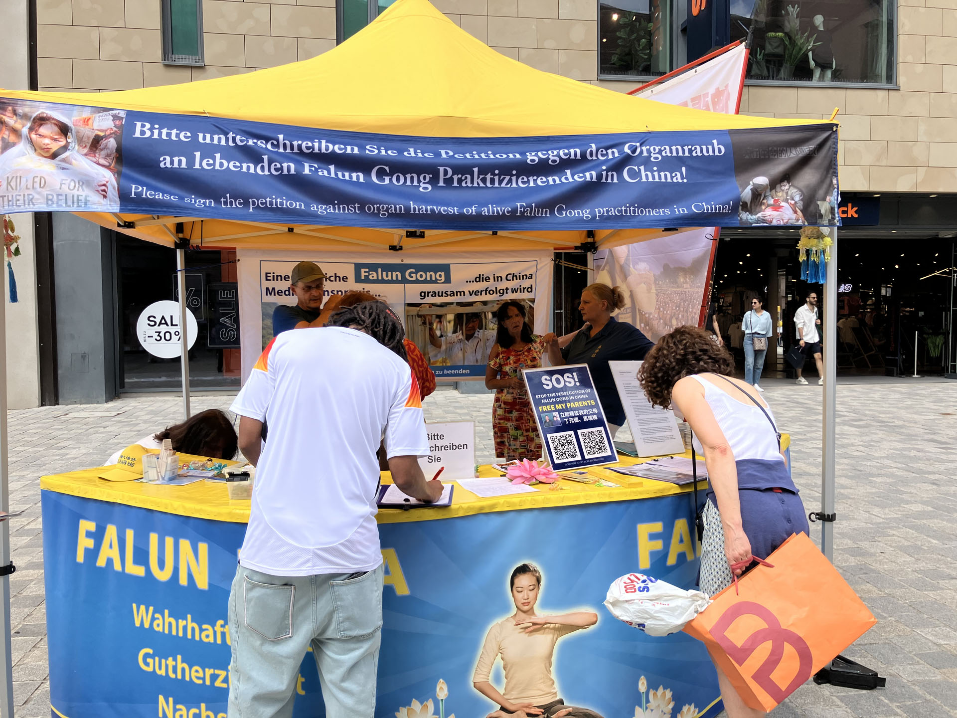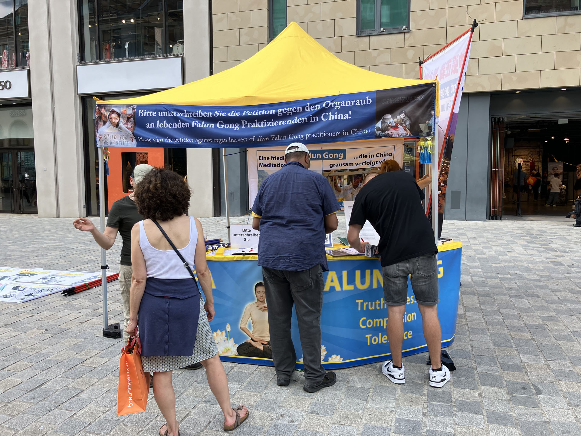 活动当天,来往的人们接过真相传单;有的询问中共为什么迫害和平的法轮功学员;有的询问如何帮忙制止这场迫害;还有的市民还在谴责中共活摘法轮功学员人体器官的请愿书上签名,呼吁德国政府公开谴责对法轮功学员的迫害。