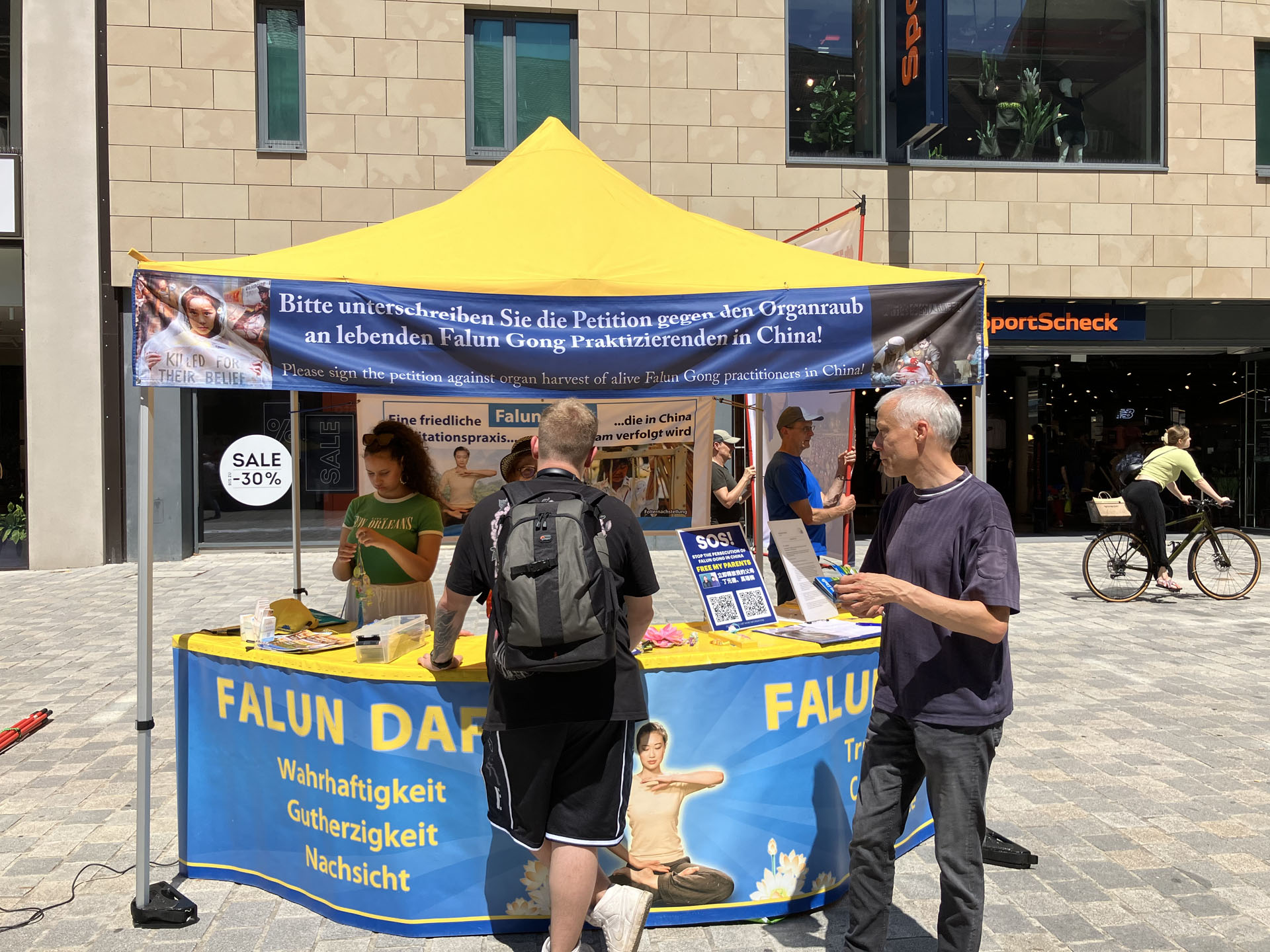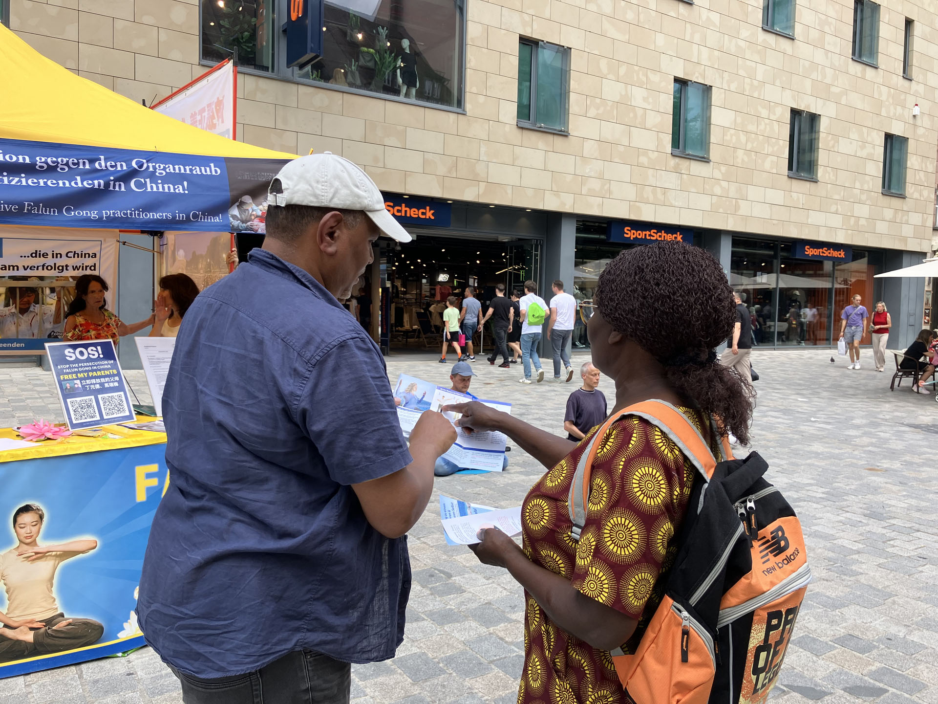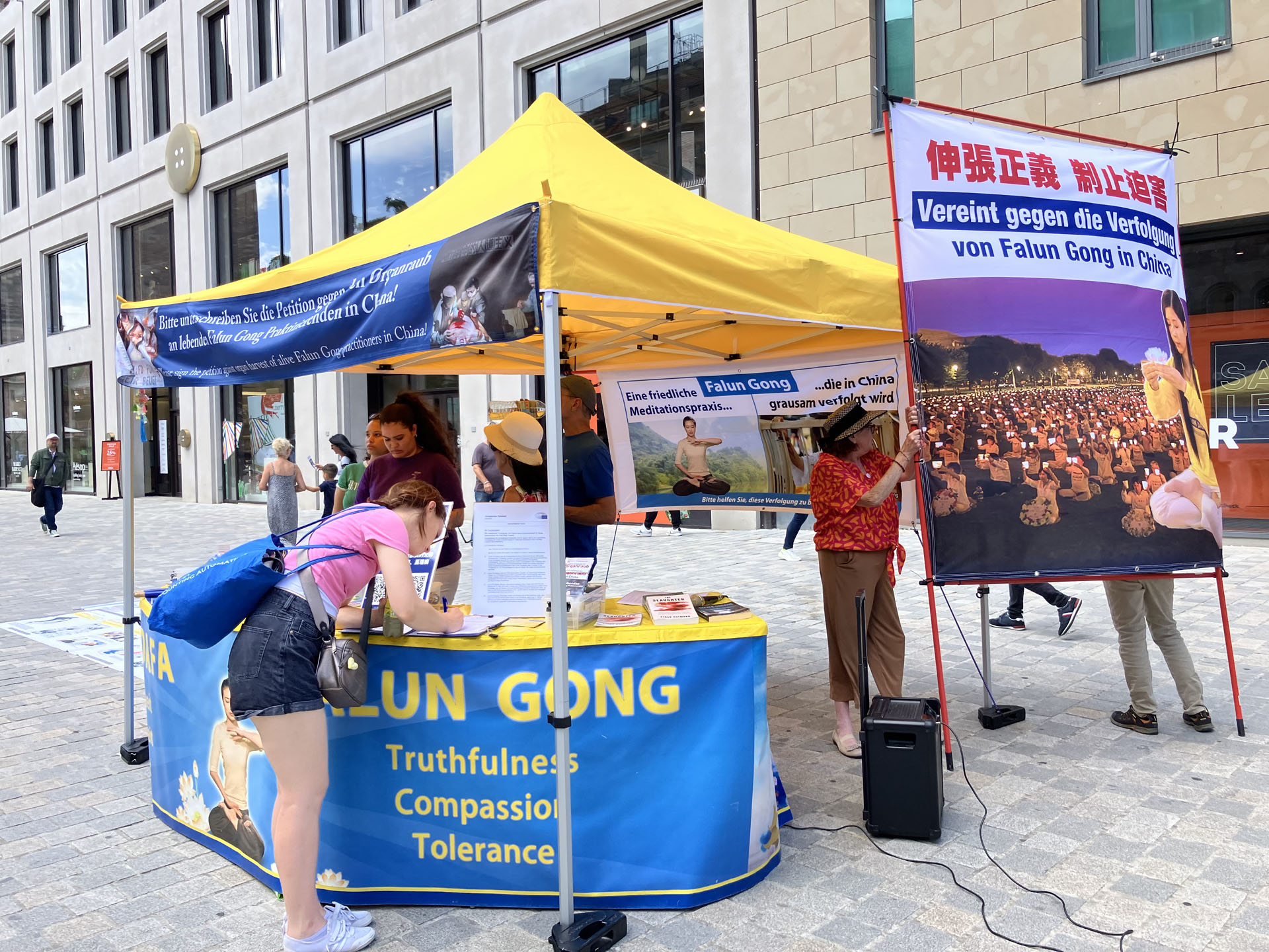 活动当天,来往的人们接过真相传单;有的询问中共为什么迫害和平的法轮功学员;有的询问如何帮忙制止这场迫害;还有的市民还在谴责中共活摘法轮功学员人体器官的请愿书上签名,呼吁德国政府公开谴责对法轮功学员的迫害。