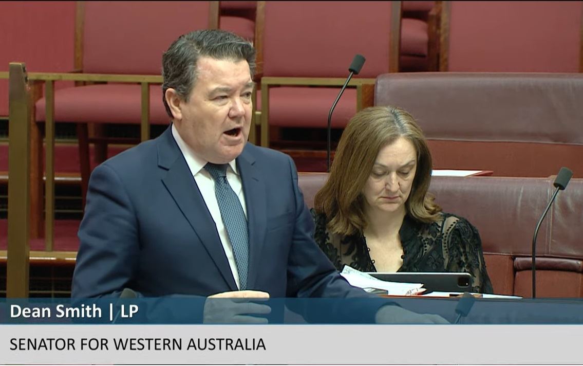 ![]() 图2:二零二四年八月二十一日,西澳自由党联邦参议员迪恩·史密斯(Senator Dean Smith)在参议院举行的修正案二读辩论会上发言。(澳洲参议院网站视频截图) |