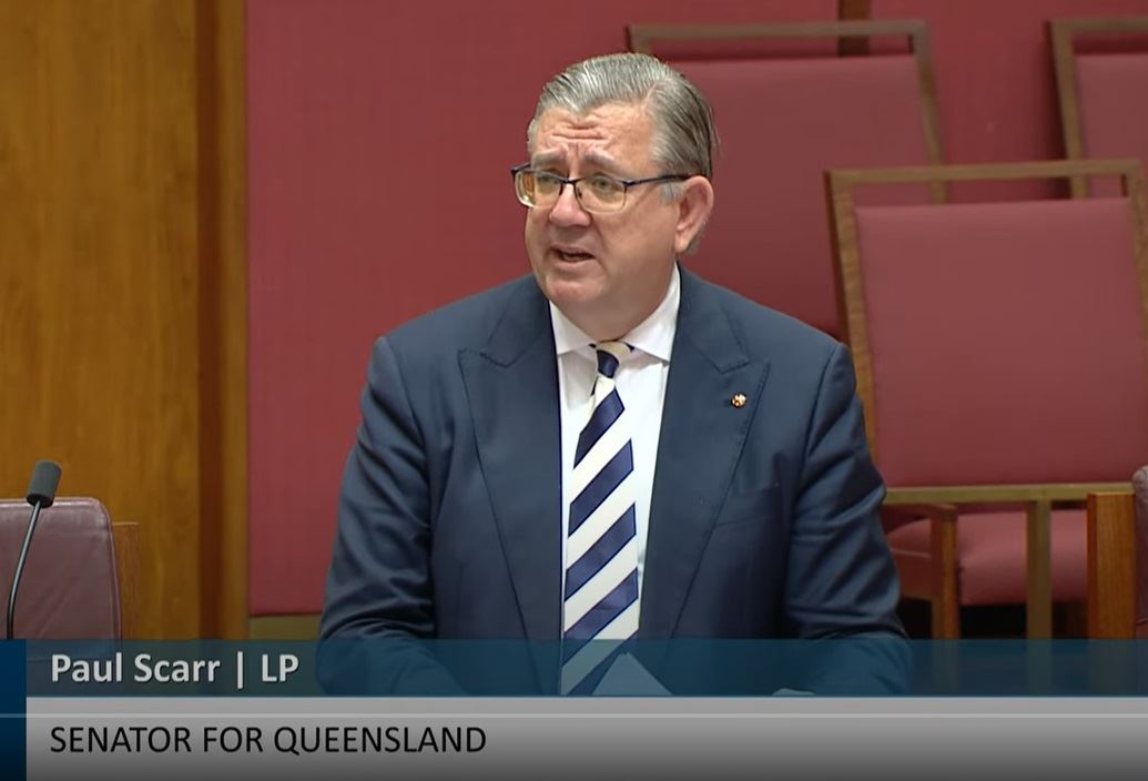 ![]() 图5:二零二四年八月十五日,参议员保罗·斯卡尔(Senator Paul Scarr)在参议院举行的修正案二读辩论会上发言。(澳洲参议院网站视频截图) |