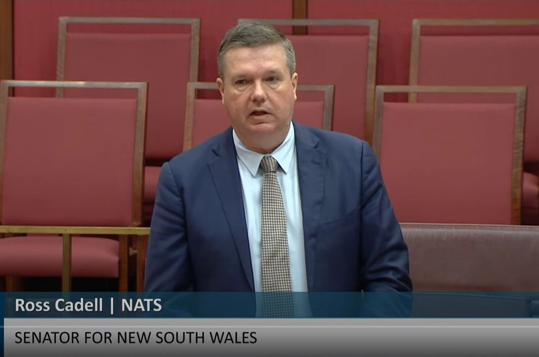 ![]() 图6:二零二四年八月十五日,参议员罗斯·卡德尔(Senator Ross Cadell)在参议院举行的修正案二读辩论会上发言。(澳洲参议院网站视频截图) |