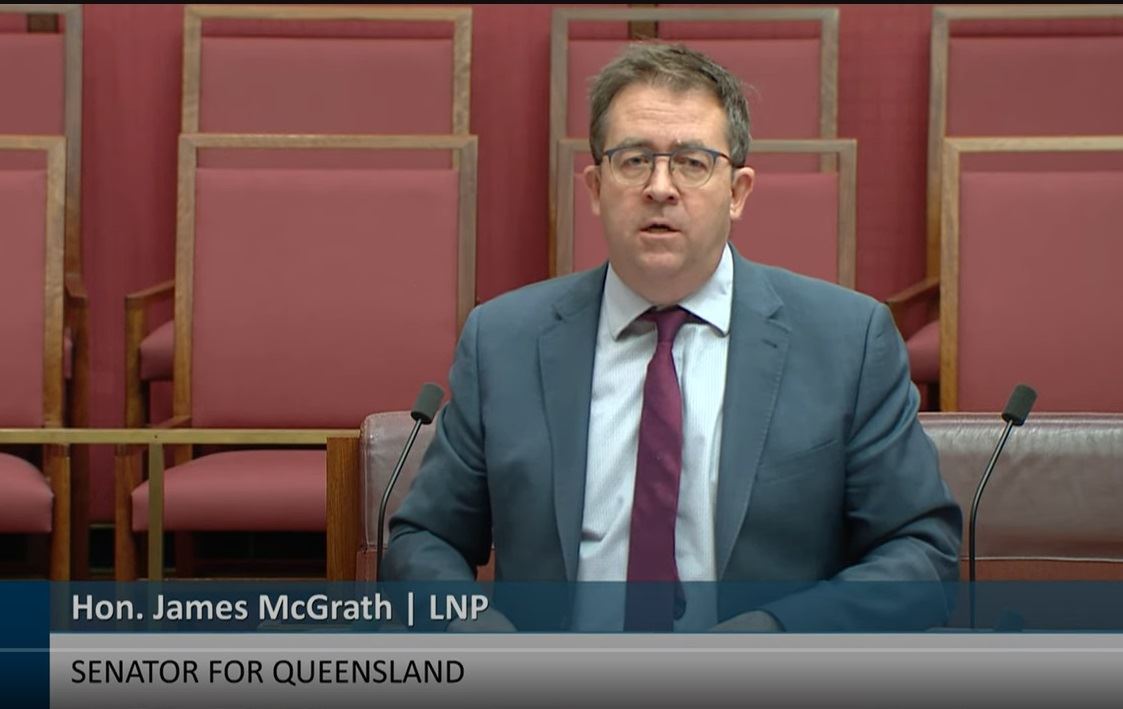 ![]() 图7:二零二四年八月十五日,参议员詹姆斯·麦克格拉斯(Senator the Hon James McGrath)在参议院举行的修正案二读辩论会上发言。(澳洲参议院网站视频截图) |