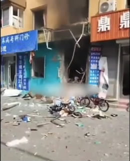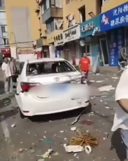当时街道上路过的行人算我共三个人。有一个女的和我并肩走,我一看,她脑门和腿上都出血了,再看那个男的,手捂着耳朵,鲜血往下淌。现场一片狼藉,五金商店里着起了大火,滚滚浓烟窜到了楼顶。门前的几辆轿车被掉下来的东西砸坏的很严重。