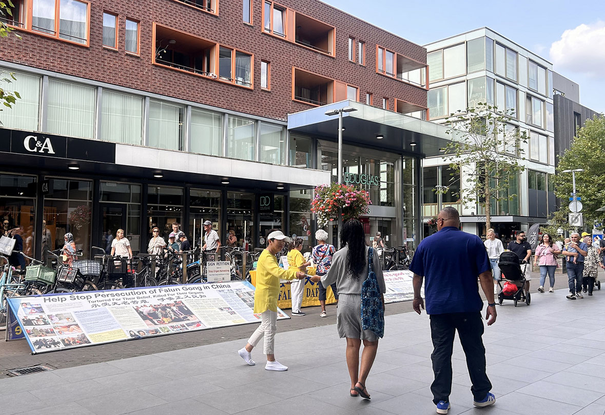 图4:阿姆斯特芬的市民及游客,主动与学员交谈了解法轮功真相。
