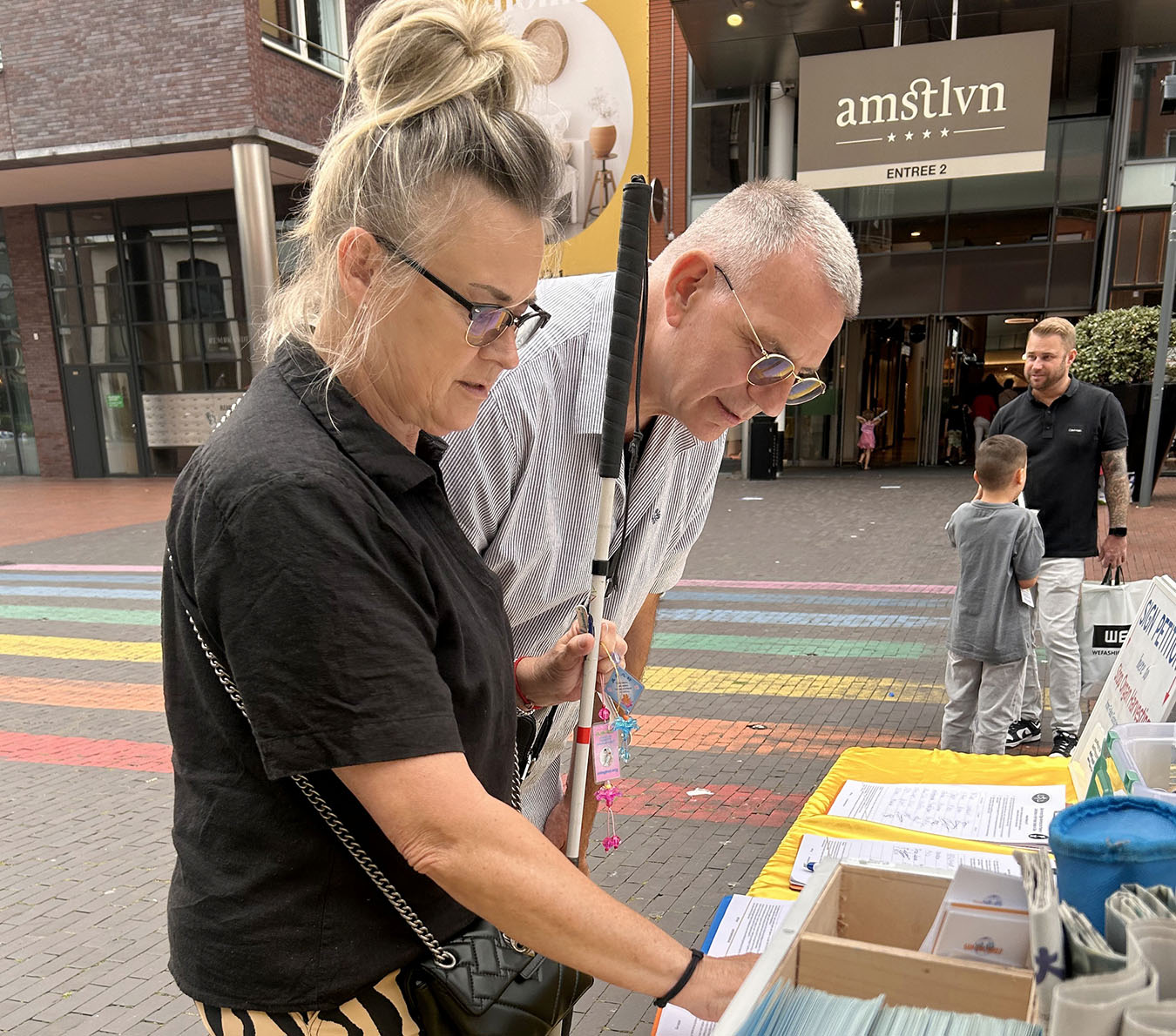皮布勒姆先生(P.Brom)和高丝莱拉(W.Golslijla)女士是一对荷兰老夫妻,他们拄着拐杖,互相搀扶着来到征签桌前,郑重地签上自己的名字。他们是先阅读传单,了解了法轮功学员被迫害的真相,所以直接来签名。学员感谢他们的支持:“您的签名会帮助制止中共对中国法轮功学员的迫害。”皮布勒姆表情严肃地说:“是的,签名很重要,我知道!”