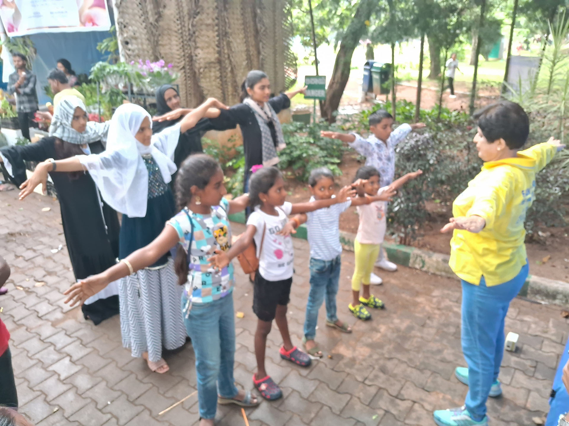学员们向大家分发印地语、英语、卡纳达语、泰卢固语、泰米尔语和马拉雅拉姆语的真相传单,并介绍了什么是法轮功和真、善、忍的修炼准则,中国法轮功学员二十五年来在反迫害中展现的大善与大忍赢得了现场民众的支持与同情。