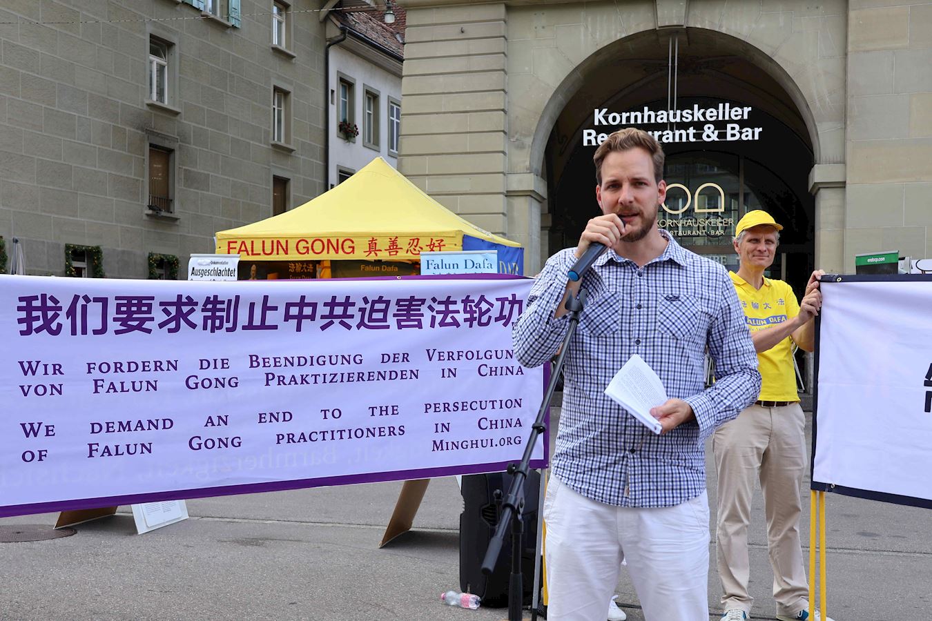 演讲中也分享了当天上午在中共驻伯尔尼使馆前宣读的劝善信,在中文和德文的两封信中,法轮功学员告诉中共使馆工作人员:正因大法的美好,三十多年来弘传世界上百个国家;也因迫害的危害,二十五年来多少家破人亡;但无论身在何处,来自哪个国家,中国,瑞士及世界各地的法轮功学员都希望您,身为使馆的工作人员,能敞开心扉,了解真相,选择美好的未来——为了您自己,也为了您的家人。