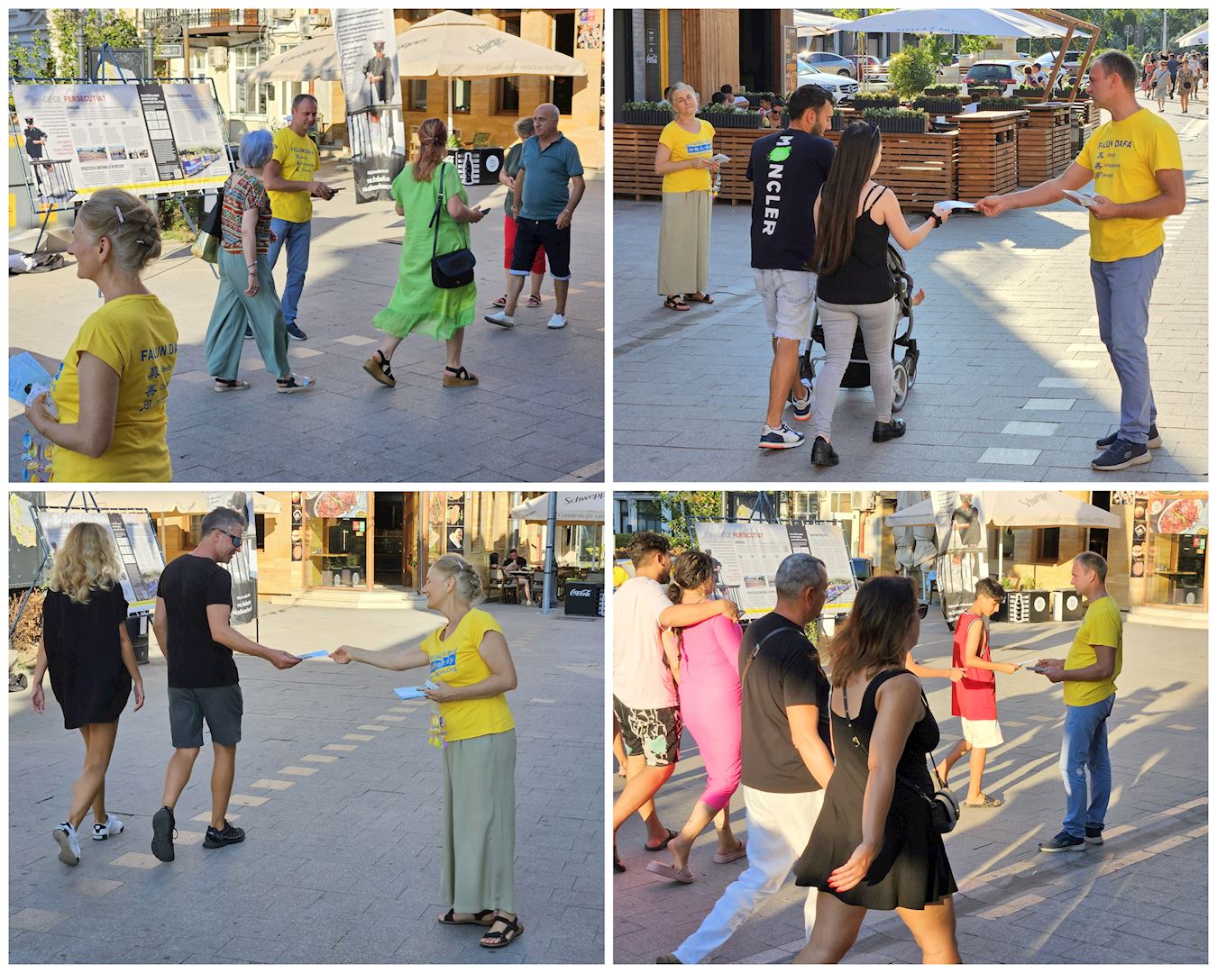 ![]() 图5~6:二零二四年七月二十八日,法轮功学员在康斯坦察向路人弘扬法轮大法。 |
