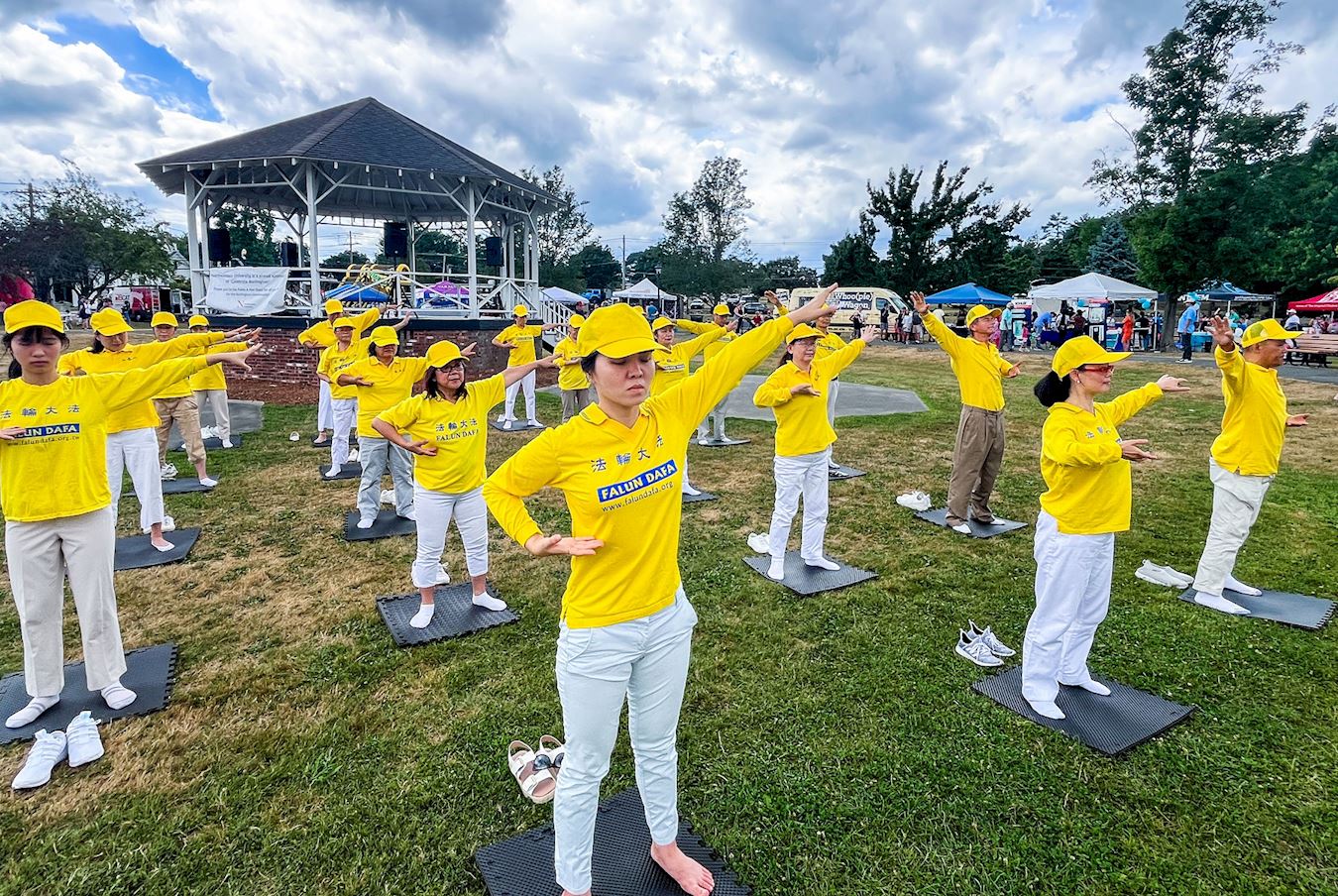 ![]() 图1~2:二零二四年八月三日,波士顿地区法轮功学员参加麻州伯灵顿举辧“欢庆伯灵顿”活动,学员集体功法展示。 |