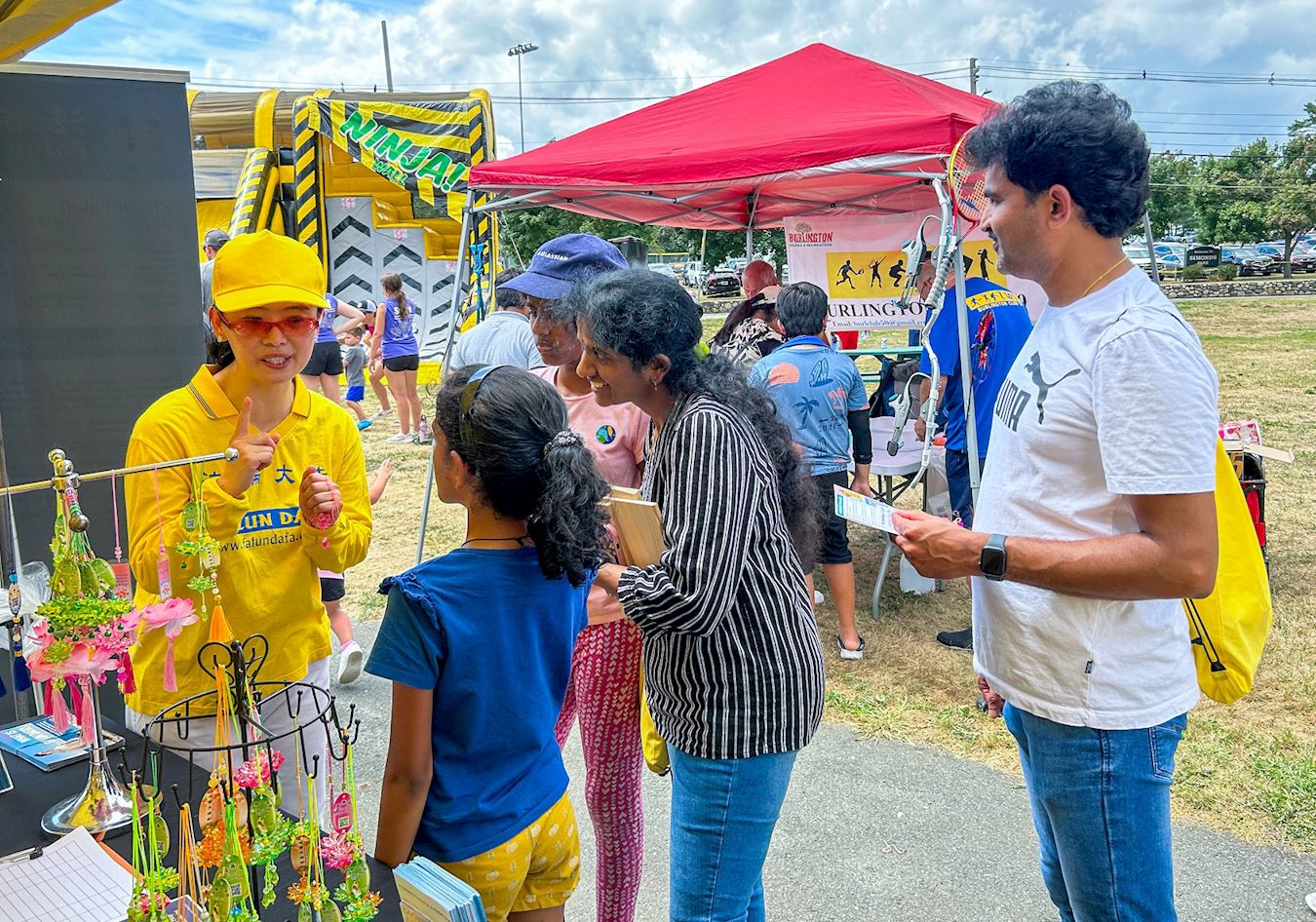 当天,法轮功学员的展位布置好后,就陆续有人前来了解法轮功。有的人看到学员在展位前的功法演示,也跟着比划炼功动作。前来的民众中有不少印度裔居民,有的一家人都对修炼和功法很感兴趣,表示回家后会上网查询,了解法轮大法。一些民众得知下午学员将有集体功法展示,纷纷记下时间,表示到时会前去观看。