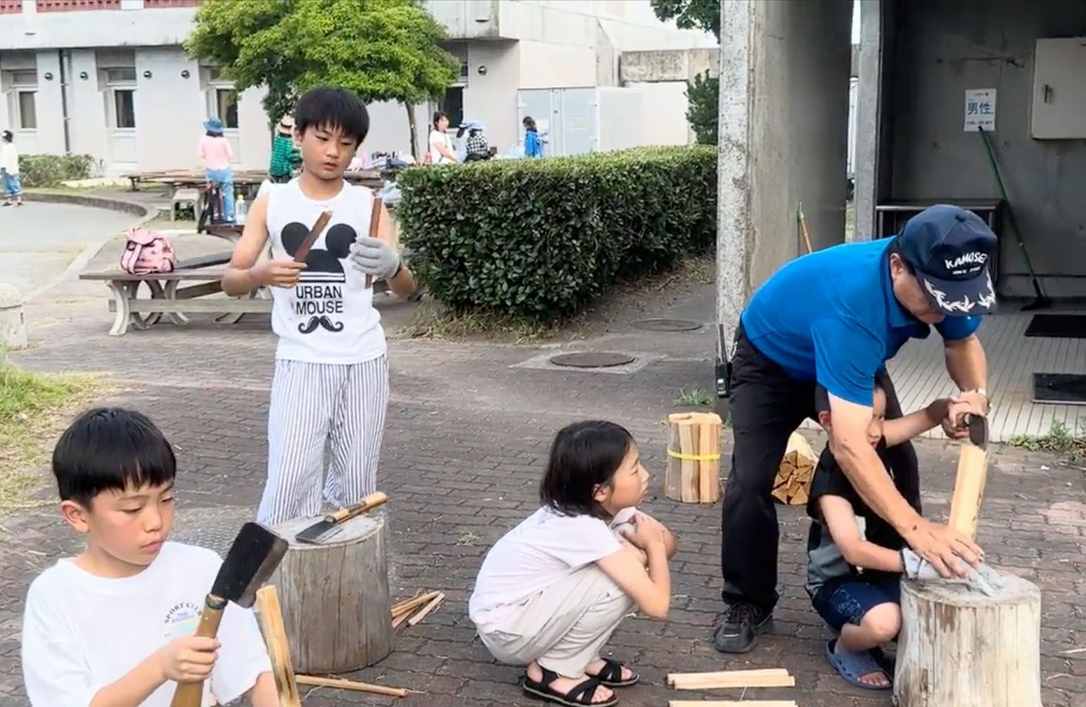 ![]() 图3~4:户外厨房体验活动包括劈柴生火,体验学蒸饭。 |