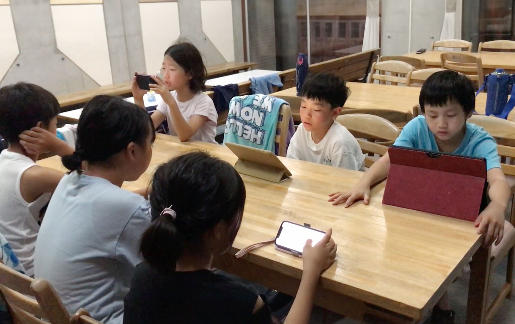 ![]() 图5~6:大法小弟子们集体学法。(阅读着下载到手机或平板上的法轮功书籍电子书)。 |