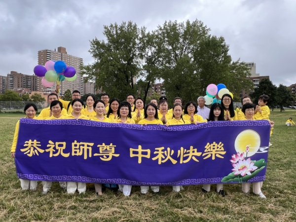 图1:纽约部分法轮功学员恭祝法轮功创始人李洪志先生中秋佳节快乐,并向师父表达感恩。