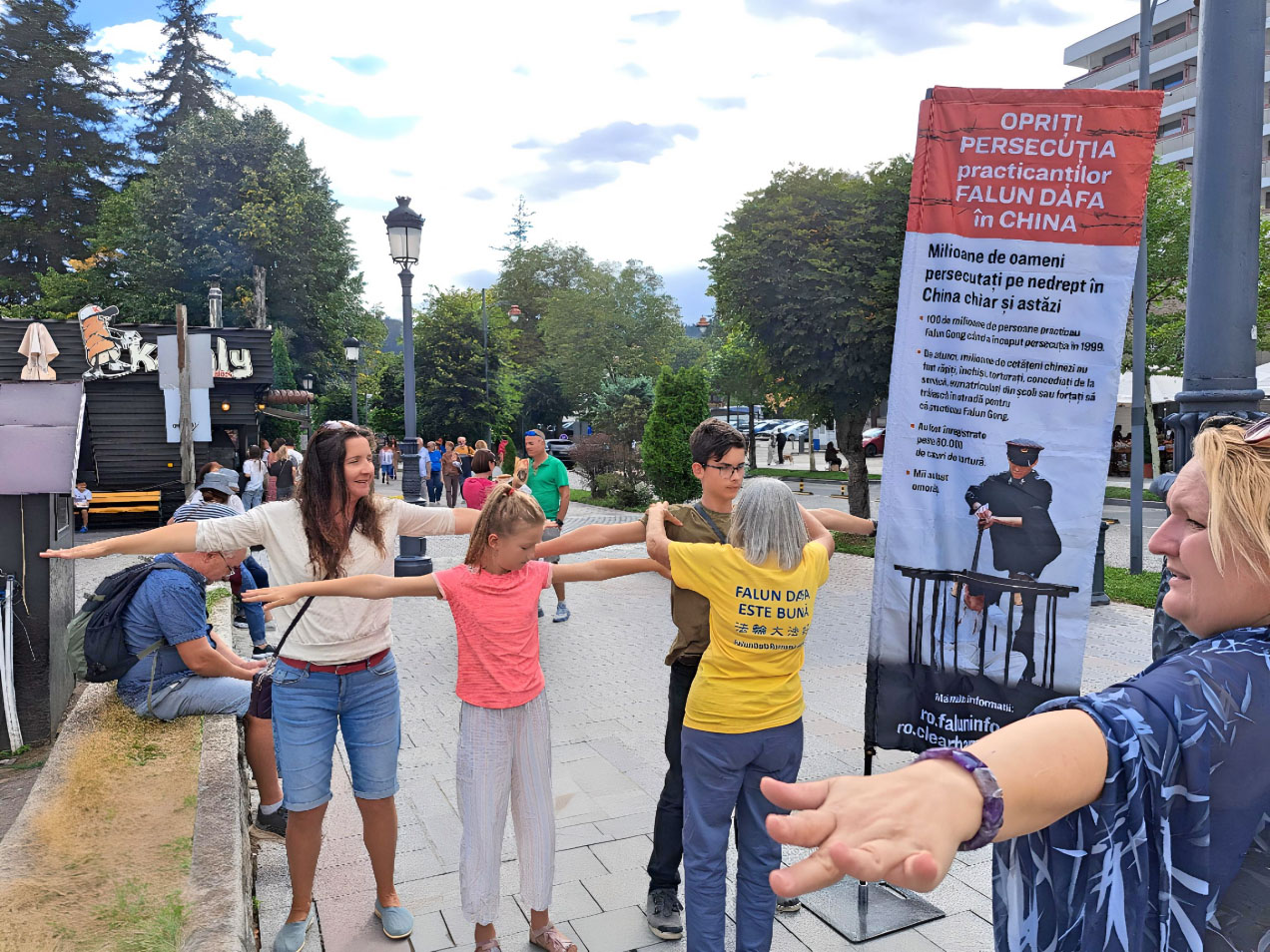 ![]() 图8:安德莉亚(Andreea)(右三)和彼得鲁萨(Petruşa)(右一)表示支持法轮大法。 |