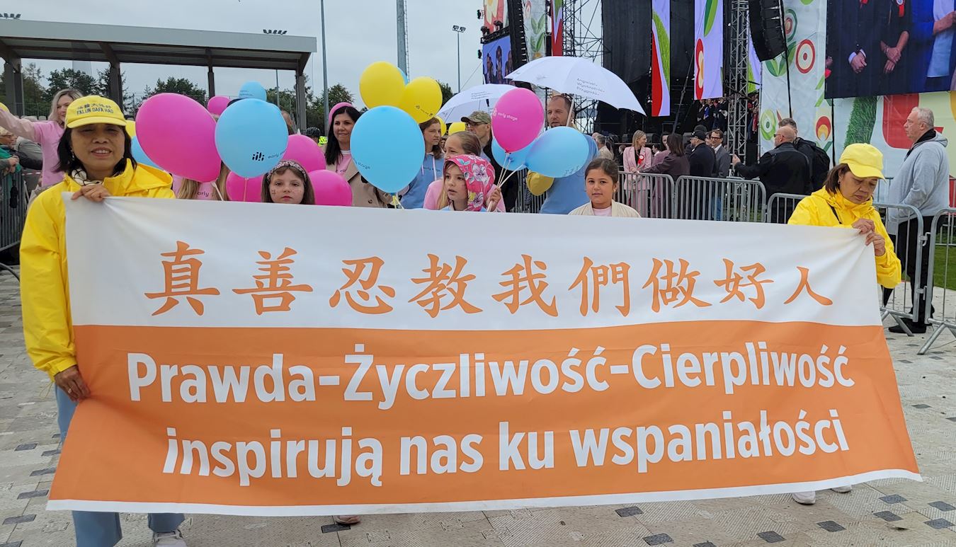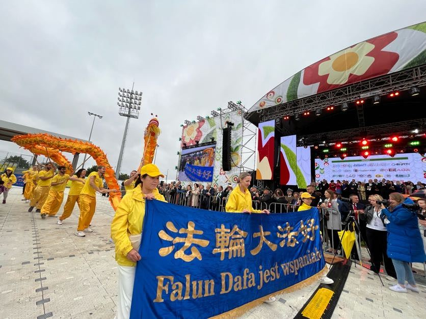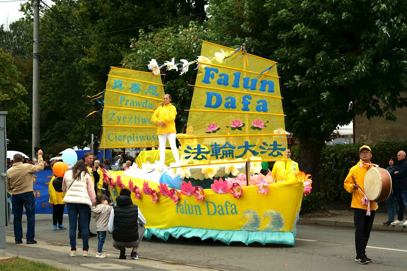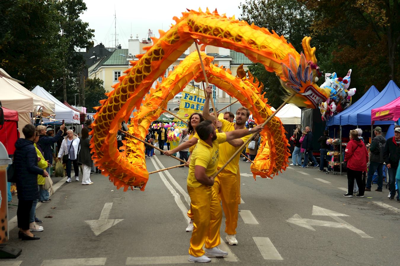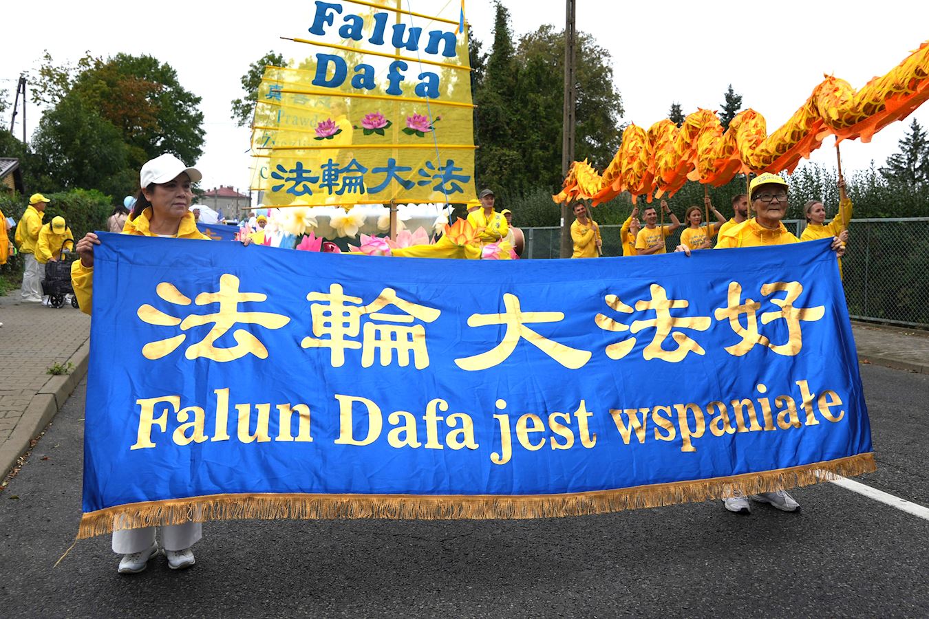 【明慧网二零二四年九月十九日】金秋送爽硕果飘香,二零二四年九月十四日在波兰最大农业园艺中心斯凯尔涅维采(Skierniewice)市到处洋溢着节日气氛,由两千多人组成的近七十个各界团体,在色彩缤纷的大游行中拉开了第四十七届“鲜花水果蔬菜”丰收节帷幕。波兰法轮功学员连续多年参加游行活动,使越来越多的人关注和了解到法轮功,平静祥和的法轮功功法和翱翔天空的金龙表演受到民众衷心的喜爱和欢迎。