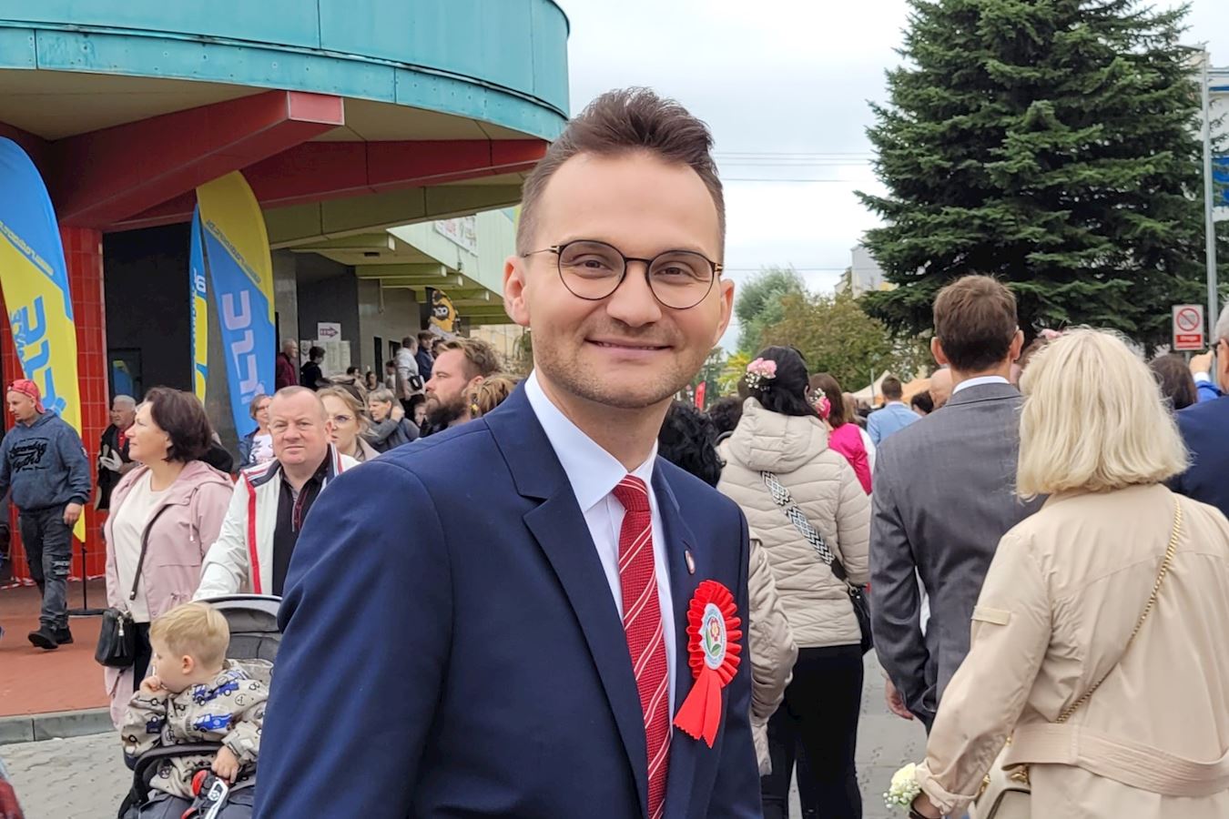 斯凯尔涅维采市议会主席雅罗斯瓦夫•切西莱夫斯基(Jarosław Chęcielewski)先生站在主席台上,全程观看了“鲜花水果蔬菜”丰收节大游行,并发表了讲话。