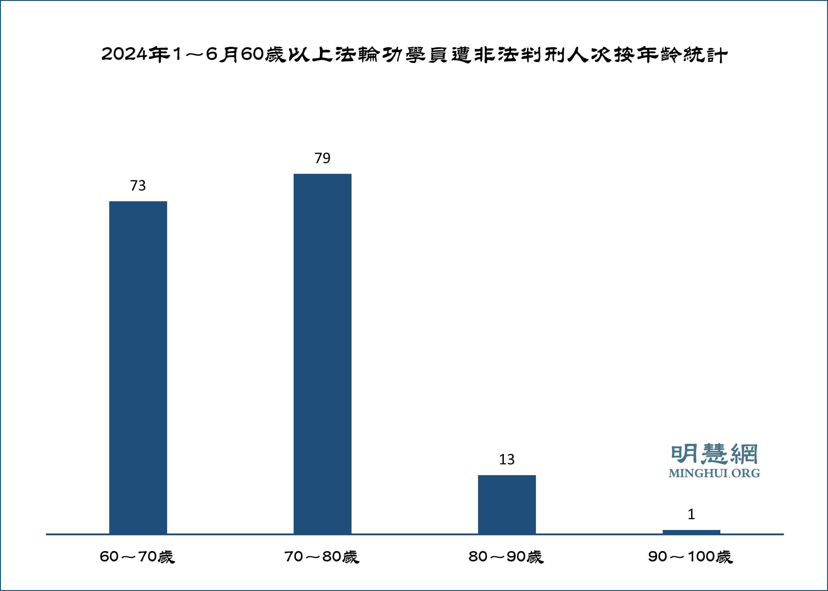 图:2024年1~6月60岁以上法轮功学员遭非法判刑人次按年龄统计