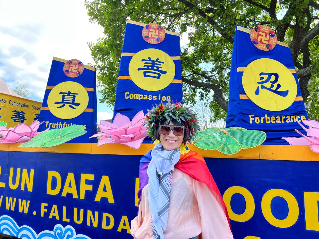 她还说:“他们一如既往地令人印象深刻。不仅服饰出彩,乐团和舞龙队伍表演不停、精彩纷呈。整个队伍都非常出彩,让人惊喜连连,我非常开心能看见法轮功学员的花车参加这次游行!”