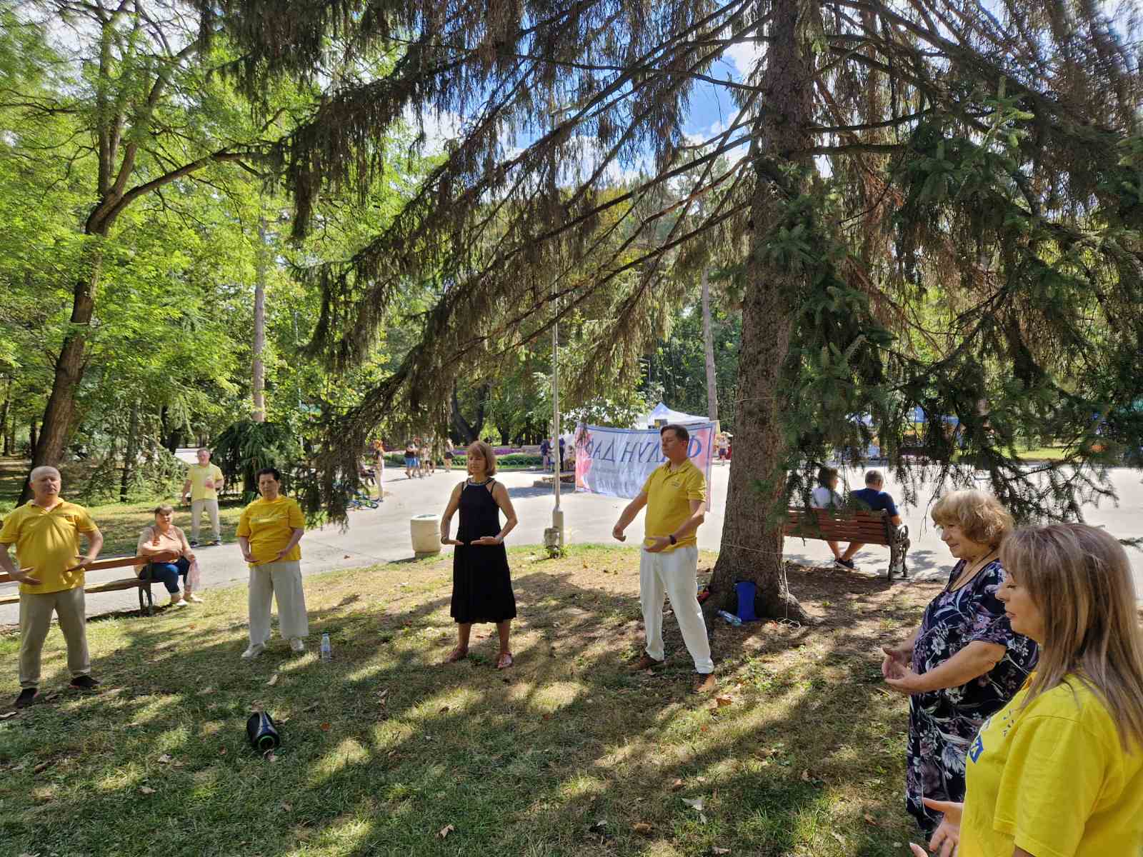 【明慧网二零二四年九月二十五日】二零二四年九月十四日至十五日,应主办方的邀请,保加利亚法轮功学员参加了在扬博尔(Yambol)举办的“你好,健康!(Hello, Health!)”博览会。很多观众在听闻法轮大法的修炼原则真、善、忍之后表示,不仅想学炼功法动作,还希望将真、善、忍的理念应用到日常生活中去。