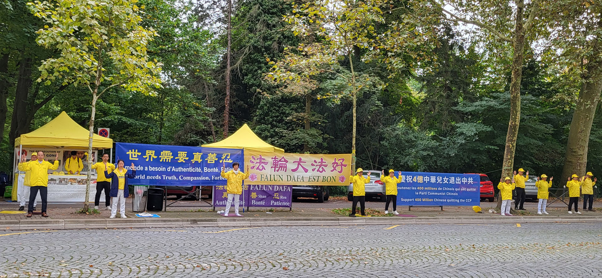 图1~5:九月二十三日,在欧洲理事会(Conseil de l’Europe)前,法轮功学员向人们揭露中共对法轮功长达二十五年的迫害,呼吁人们共同制止迫害。