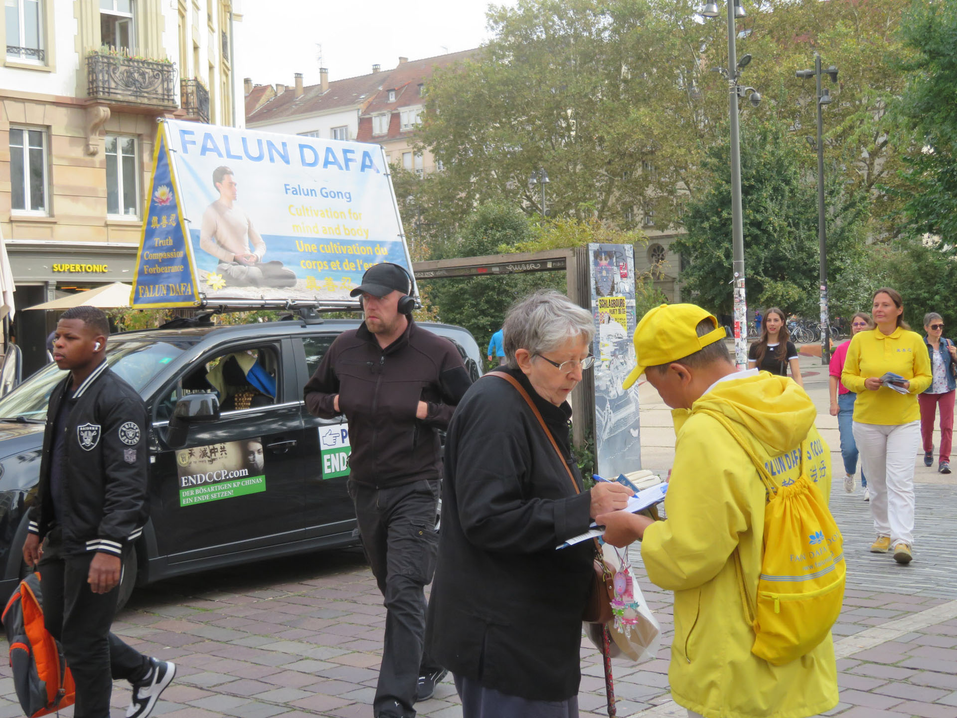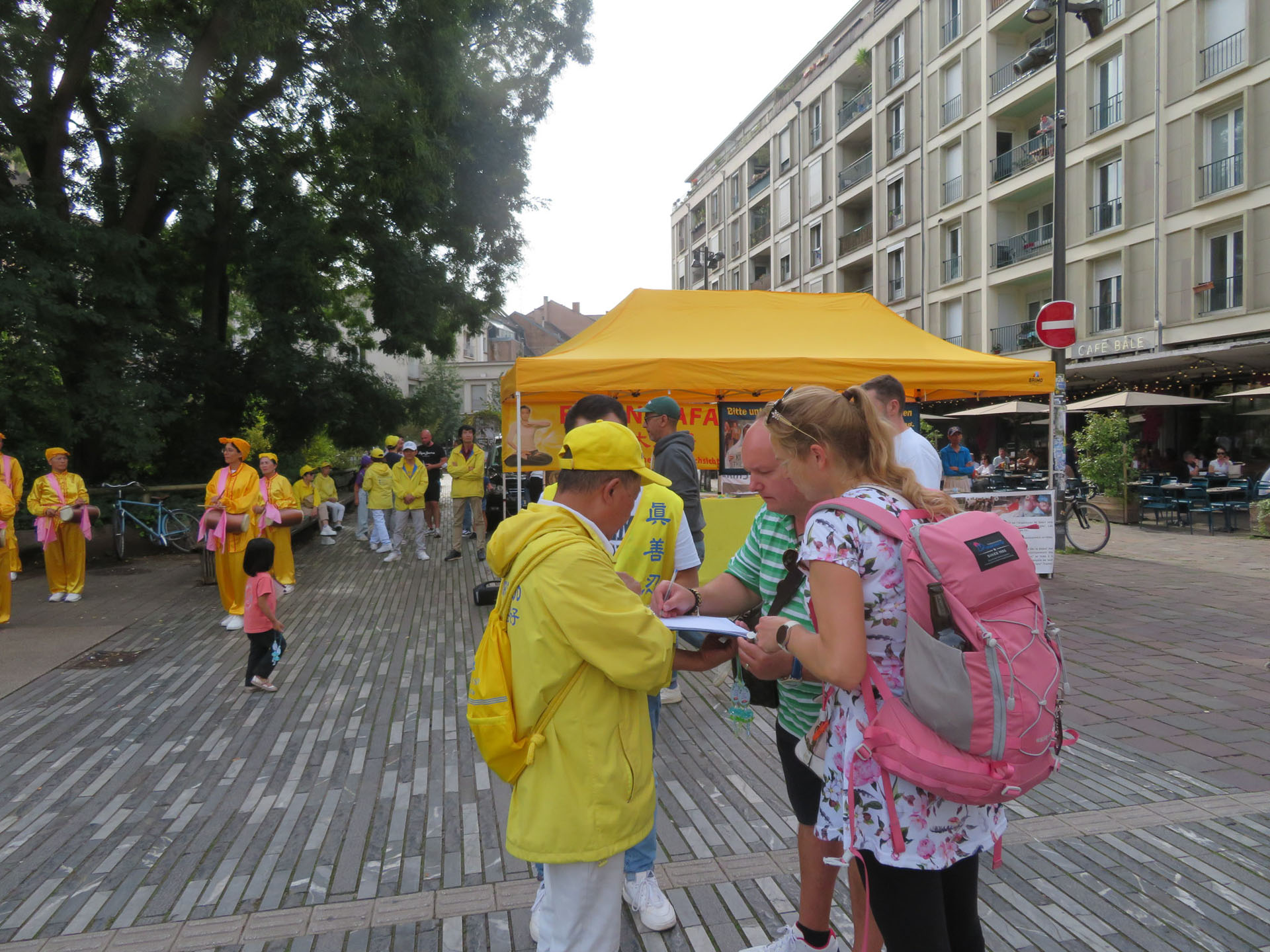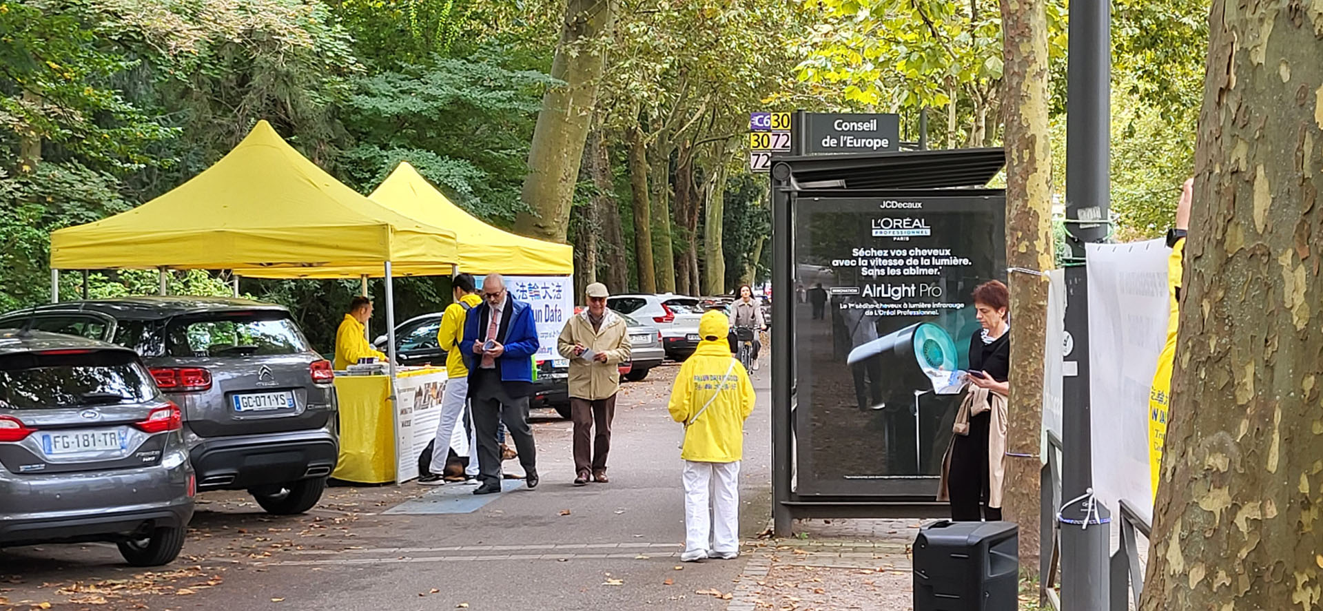 【明慧网二零二四年九月二十五日】(明慧记者周文英法国报道)二零二四年九月二十二日星期日,法轮功学员在法国斯特拉斯堡(Strasbourg)火车站广场和奥斯特利茨广场(Place d’Austerlitz)进行了讲真相和反迫害征集签字的活动。次日,又在斯特拉斯堡欧洲理事会(Conseil de l’Europe)前,揭露中共对法轮功长达二十五年的迫害,呼吁人们共同制止迫害。