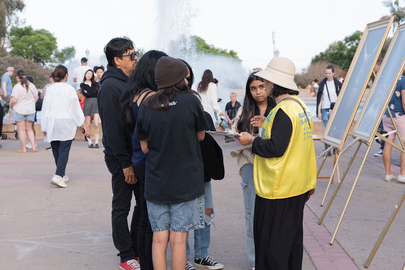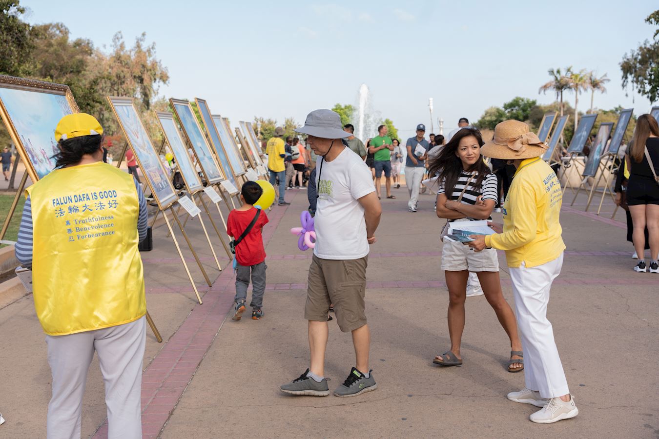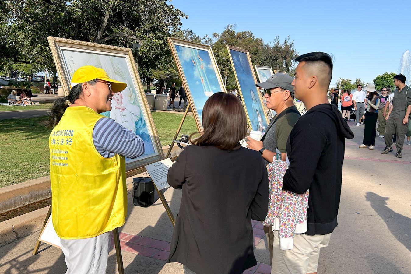 ![]() 图1:二零二四年九月二十一日,加州圣地亚哥法轮功学员在巴博亚公园(Balboa Park)举办“真善忍美展”,学员向参观者展示法轮功功法,传递法轮大法的美好。 |